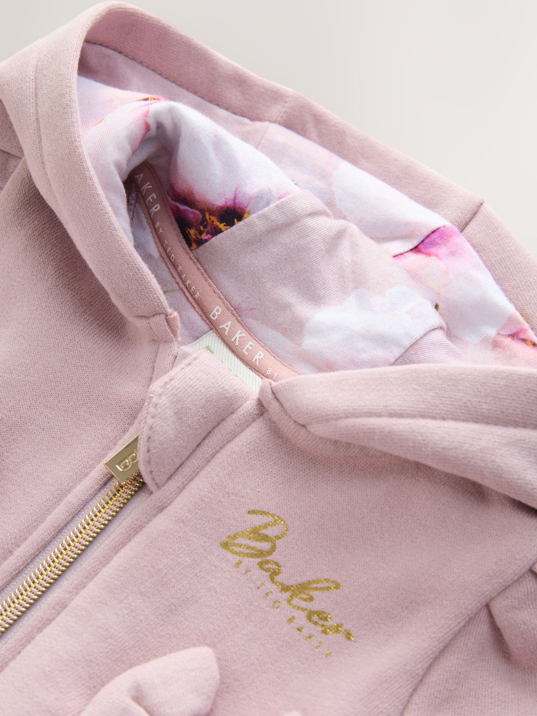 A perfect everyday outfit your little one will love, this 3-piece set from Baker by Ted Baker comes in a gorgeous pink colour and is ideal for days out and about. Featuring a soft brushback zip-through jacket with a peplum frill hem, 3D bows and a branded zip. The set also includes a soft cotton T-Shirt with foil Baker branding on the chest, and matching joggers with a bow detail at the ribbed waistband. Pair with our adorable baby padders for the cutest comfy fit! Jacket Main 85% Cotton, 15% Polyester. Rib 96% Cotton, 4% Elastane. Hood Lining 100% Cotton. T-shirt Main 100% Cotton. Rib 92% Cotton, 8% Elastane. Jogger Main 85% Cotton, 15% Polyester. Rib 96% Cotton, 4% Elastane. Country of Origin: Sri Lanka