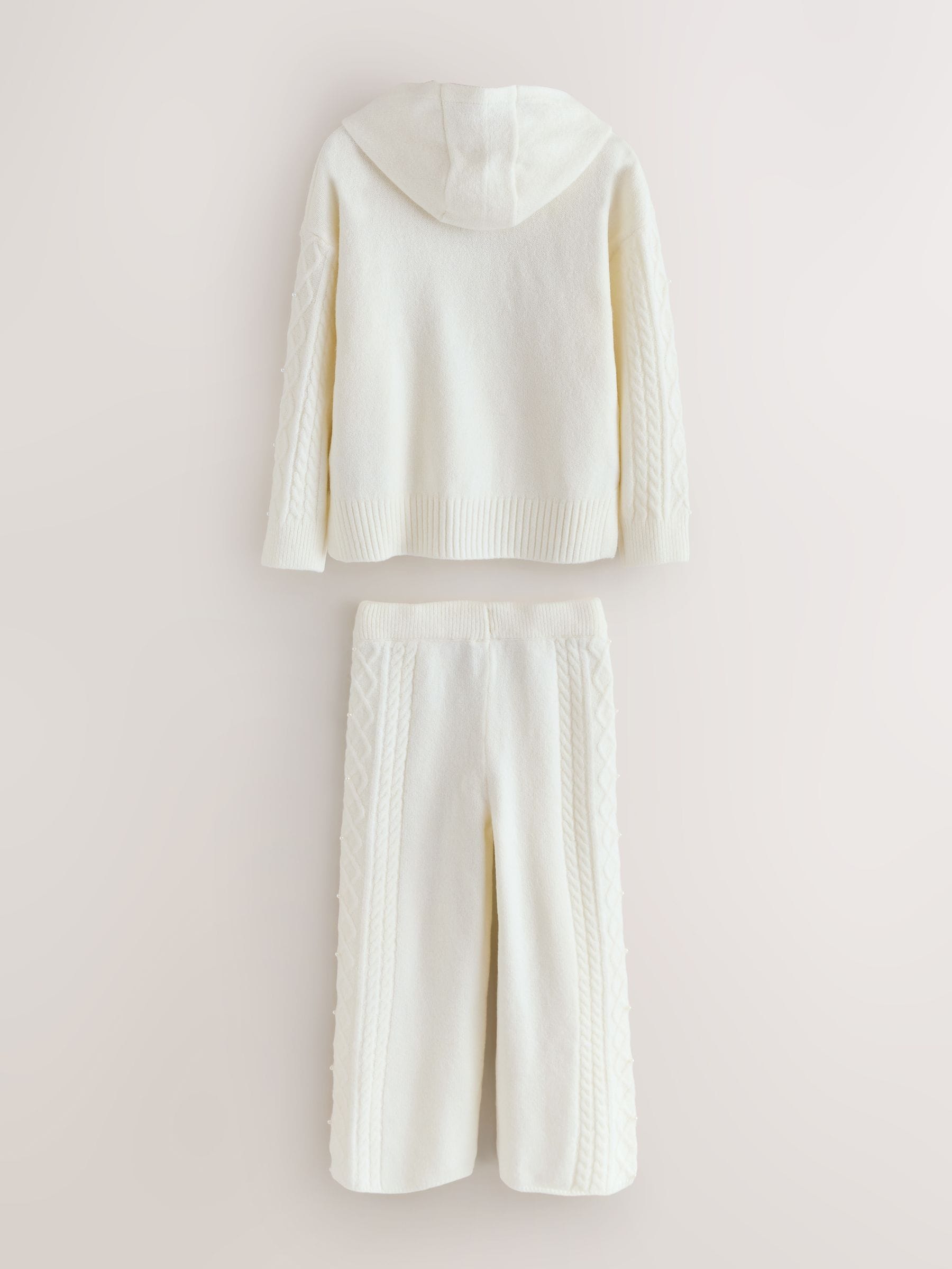 Baker by Ted Baker 2 Piece Knitted Lounge Pearl Hoodie & Wide Leg Trousers Set