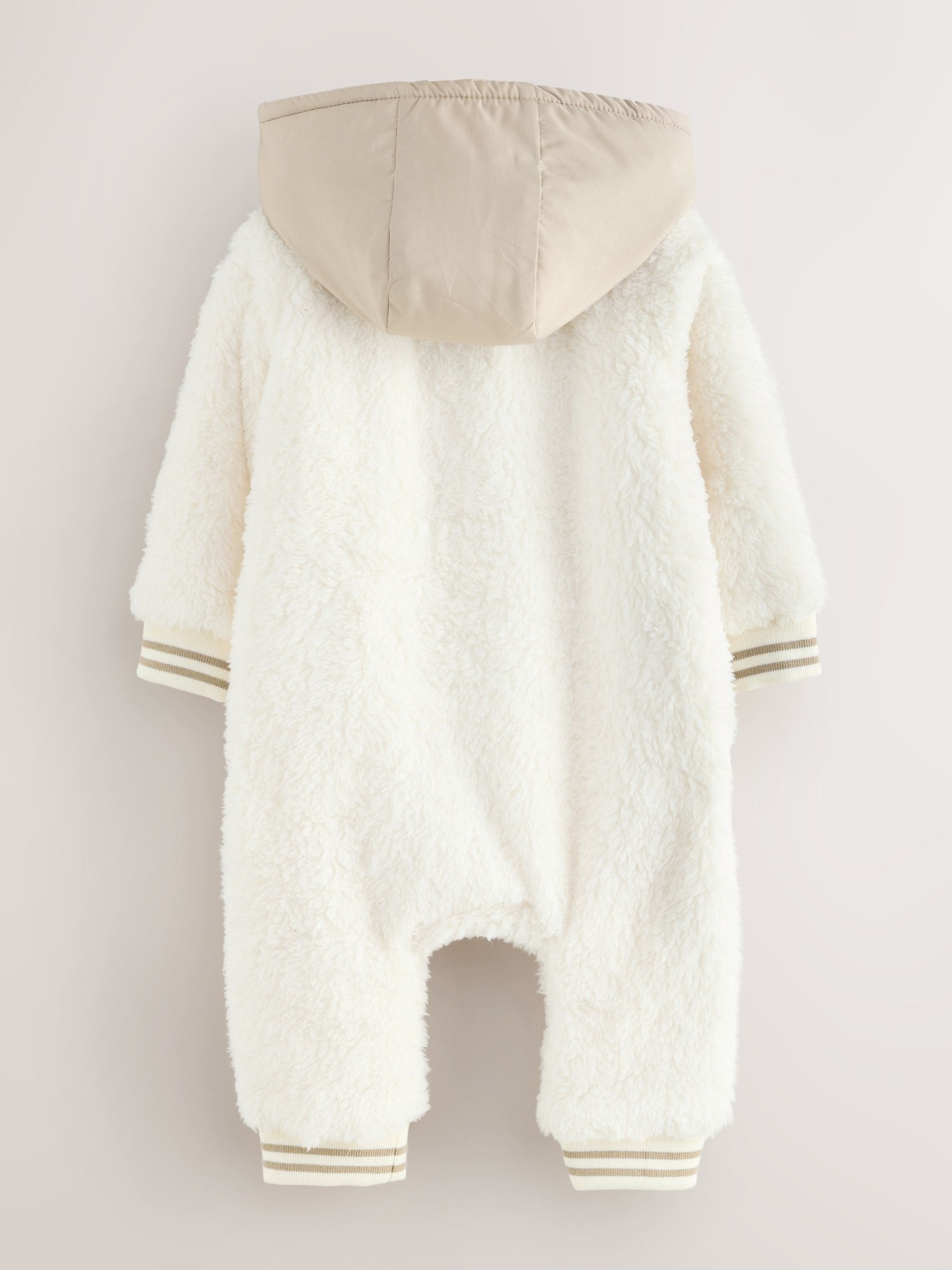 Wrap them in warmth and style with the cute Baker by Ted Baker Borg All-In-One. This playful hooded romper is made from sumptuously soft borg fleece, giving them cosy, head-to-toe comfort perfect for chilly days. The design features cool branding on the front via a contrast pocket, while the interior has branded tape on the inner hood for a stylish Ted Baker finish. This easy-to-wear all-in-one is the ultimate cosy essential for fun winter adventures or snuggling up at home. Soft and cosy borg Branding on front Branded tape on inner hood Main 100% Polyester. Lining 100% Cotton. Country of Origin: China