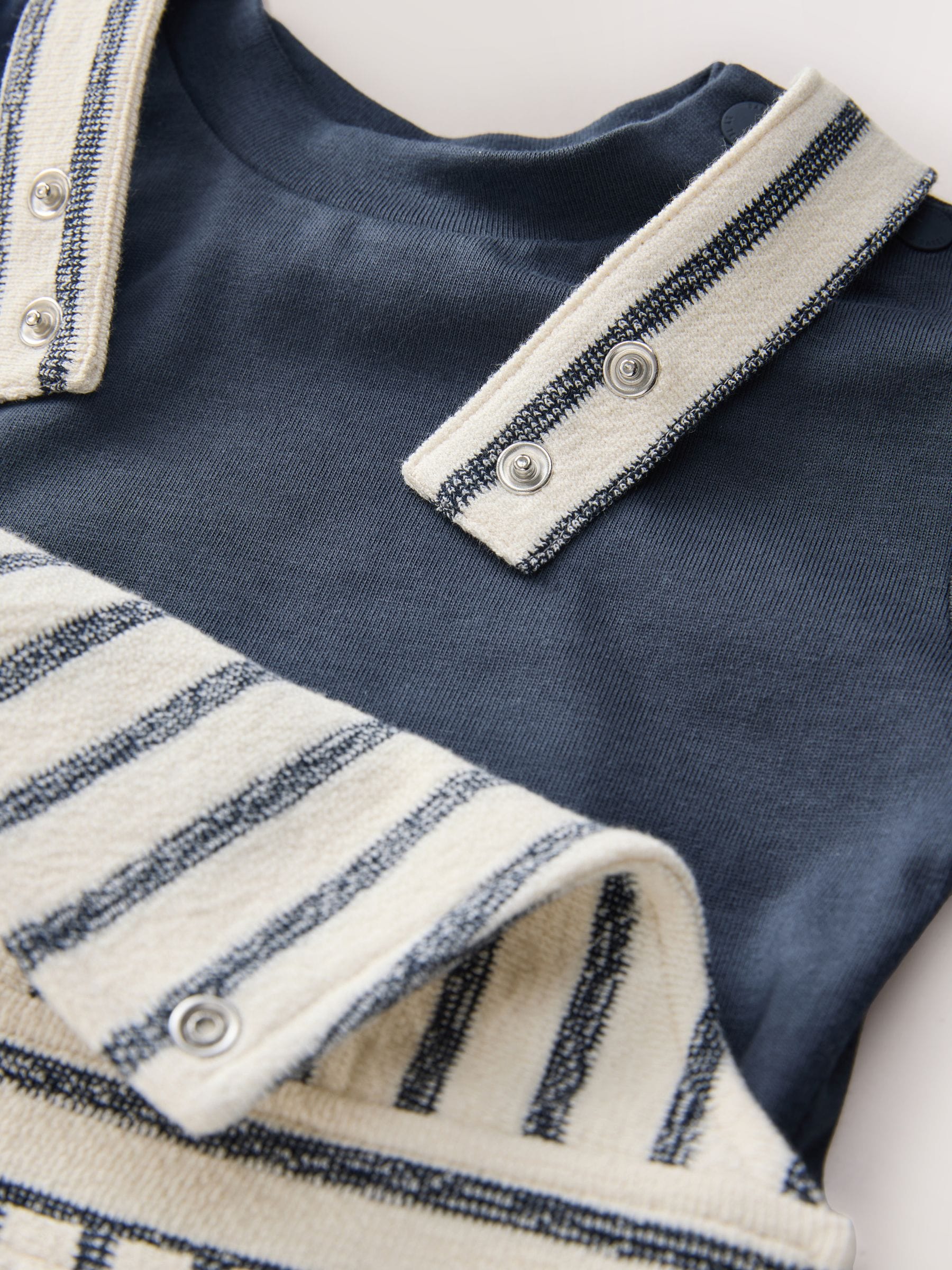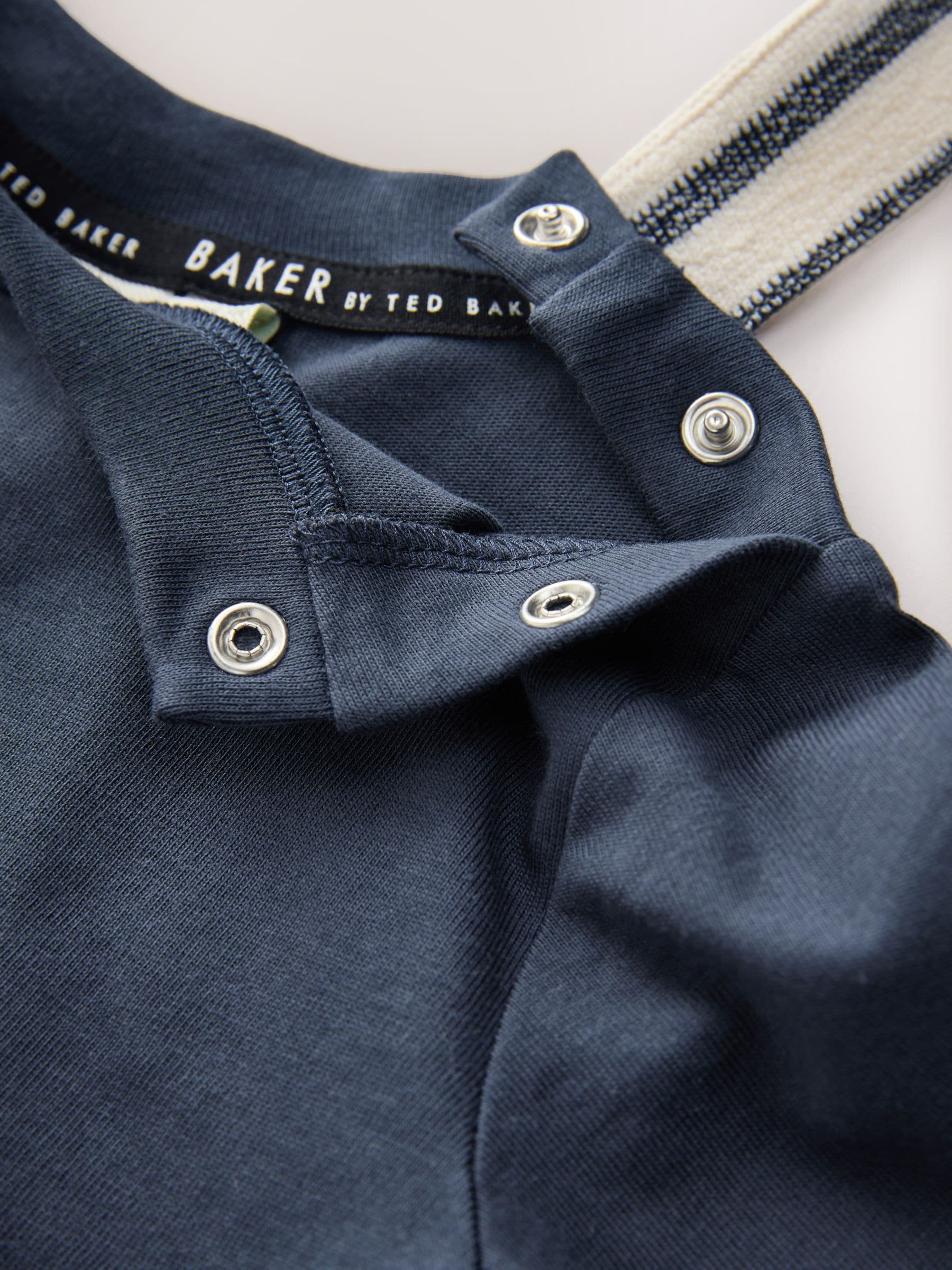 Dress your little one in classic style with the Baker by Ted Baker Long Sleeve T-Shirt and Striped Dungarees Set. This two-piece outfit is perfect for playtime or everyday adventures. It features a navy long-sleeve t-shirt with subtle BAKER branding on the sleeve. The top is paired with coordinating striped dungarees that have BAKER branded embroidery on the chest and are secured with branded snap buttons for easy changes. 2 piece set Baker branded embroidery Popper leg fastenings T-shirt and Dungaree 100% Cotton. Country of Origin: Turkey