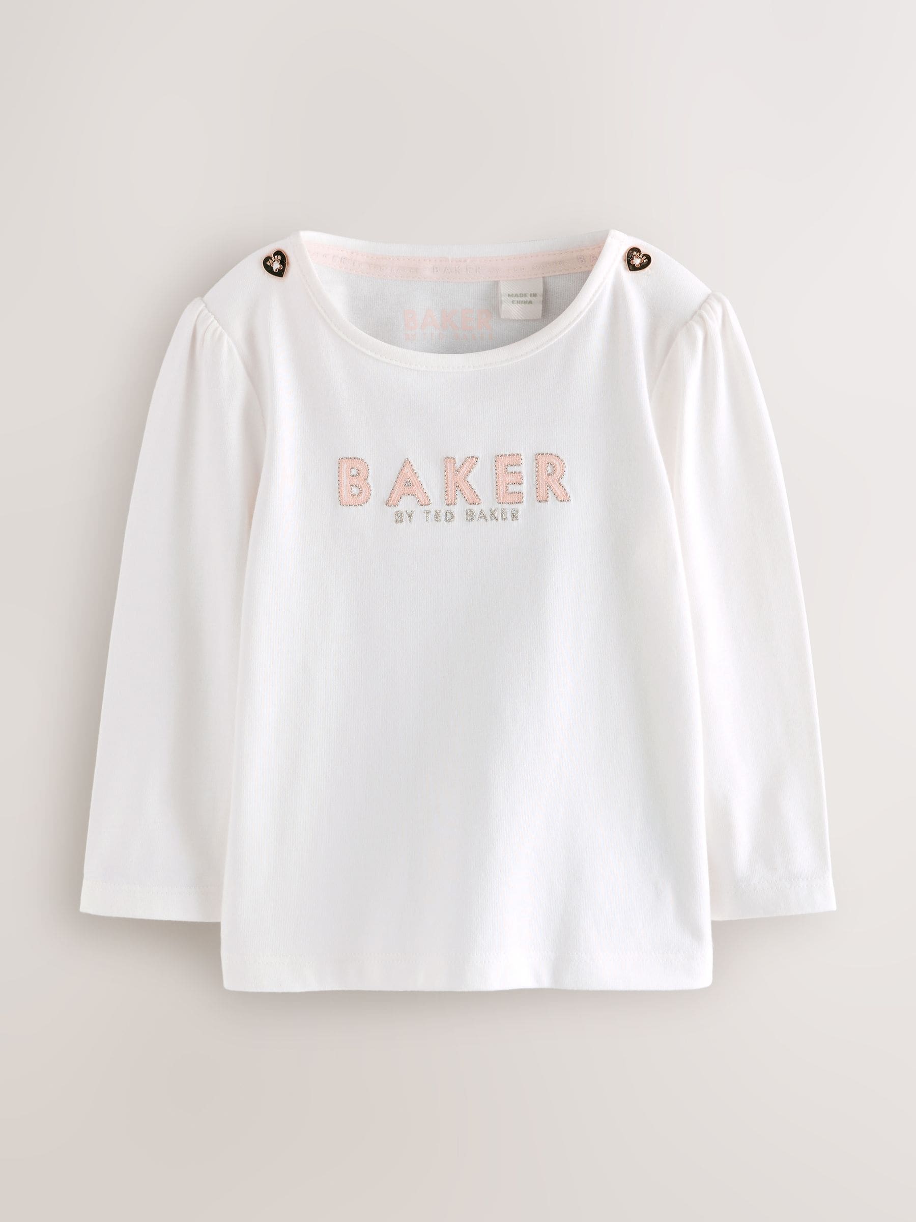 She'll look pretty as a picture in this gorgeous 2-piece dungaree set from Baker by Ted Baker. This set features a soft dunagree in a soft embossed textured fabric, with the iconic Baker bow design at the front chest, and a gold thread embroidered B branding at the centre bow. The dunagree features popper fastening on the side chest for an easy on and off closure. The set includes a white cotton T-Shirt with branded Baker gold heart buttons on the shoulders, picot trim at the sleeves, and pink and gold embroidered branding on the front chest. Other features include gold thread stitching at the cuffs of the dungaree and gold branded Baker poppers. This is a perfect everyday essential for your little one T-shirt 100% Cotton. Dungaree Main 77% Cotton, 23% Polyester. Lining 100% Cotton. Country of Origin: China Warning: Keep away from fire and flames.