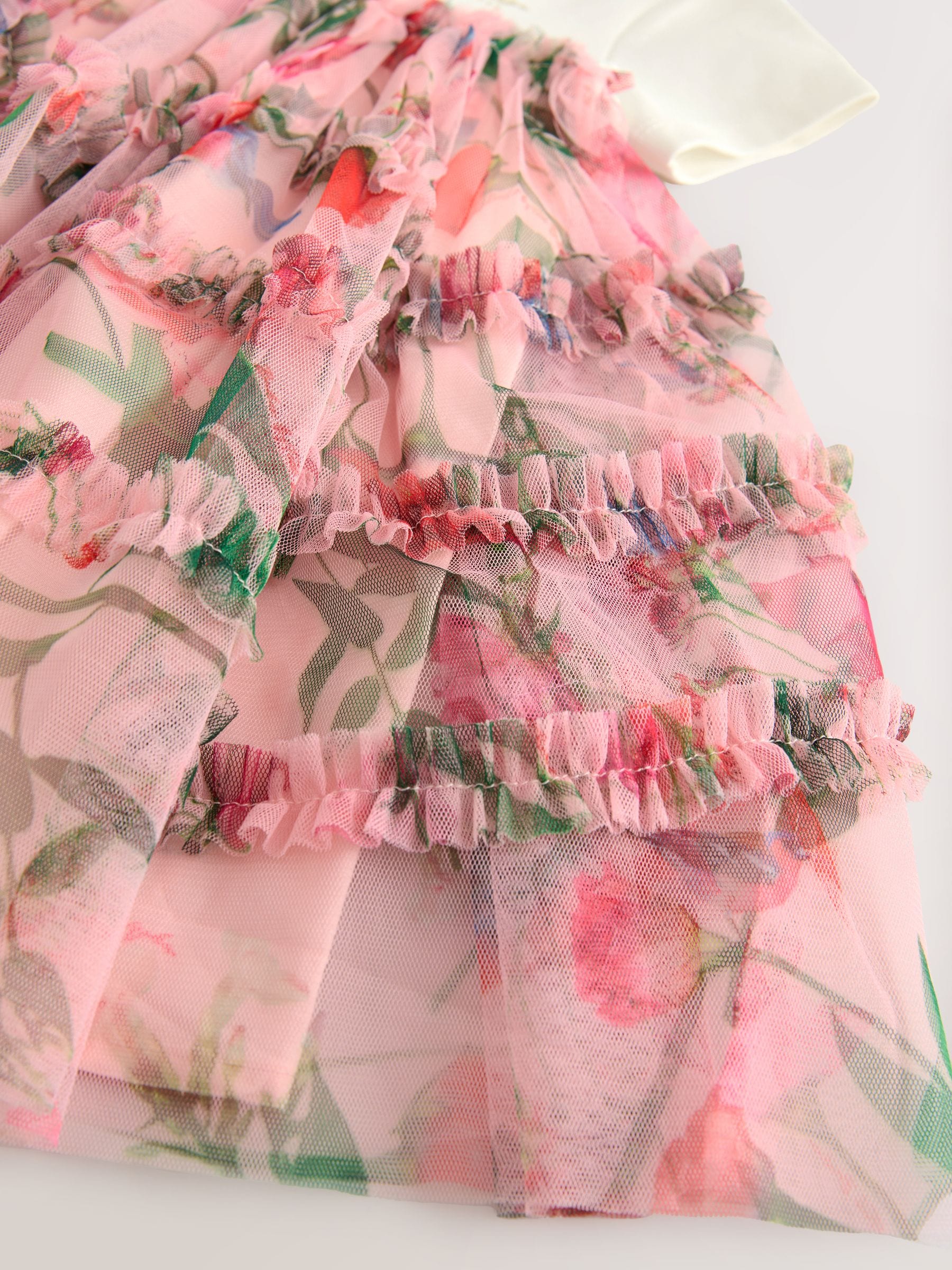 Baker by Ted Baker Pink Printed Ruffle Mesh Mockable Dress