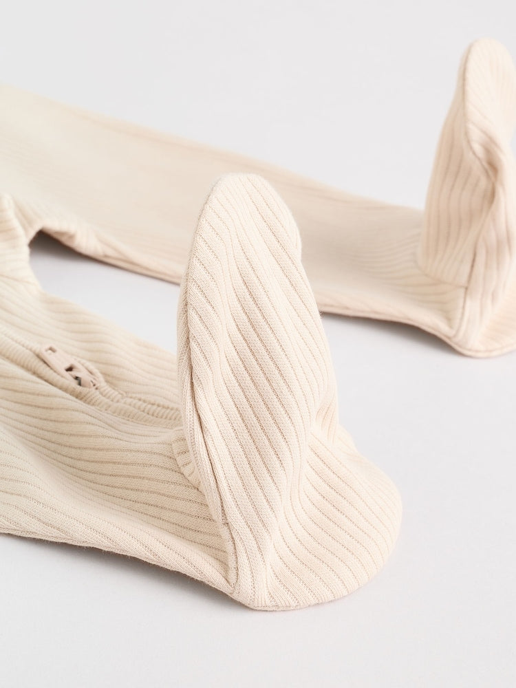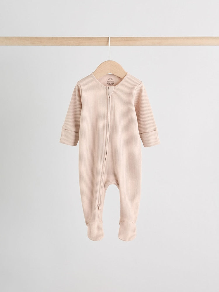Beige Baby Two Way Zip Sleepsuits 3 Pack (0-2yrs)