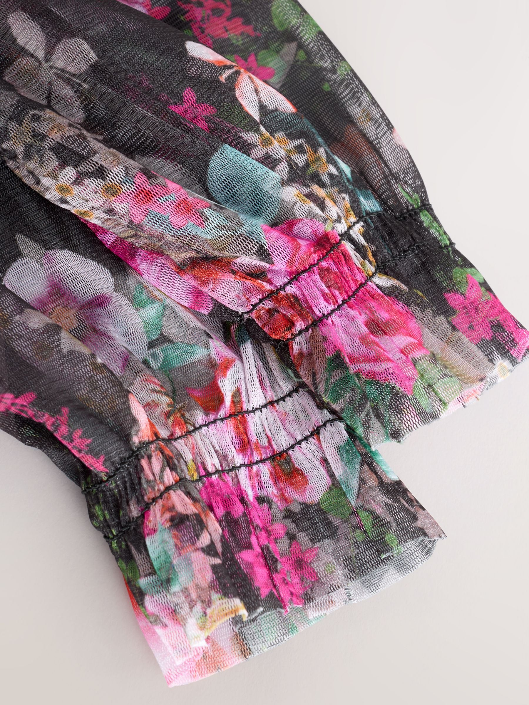 Black Floral Long Sleeve Mesh Party Dress (3-16yrs)