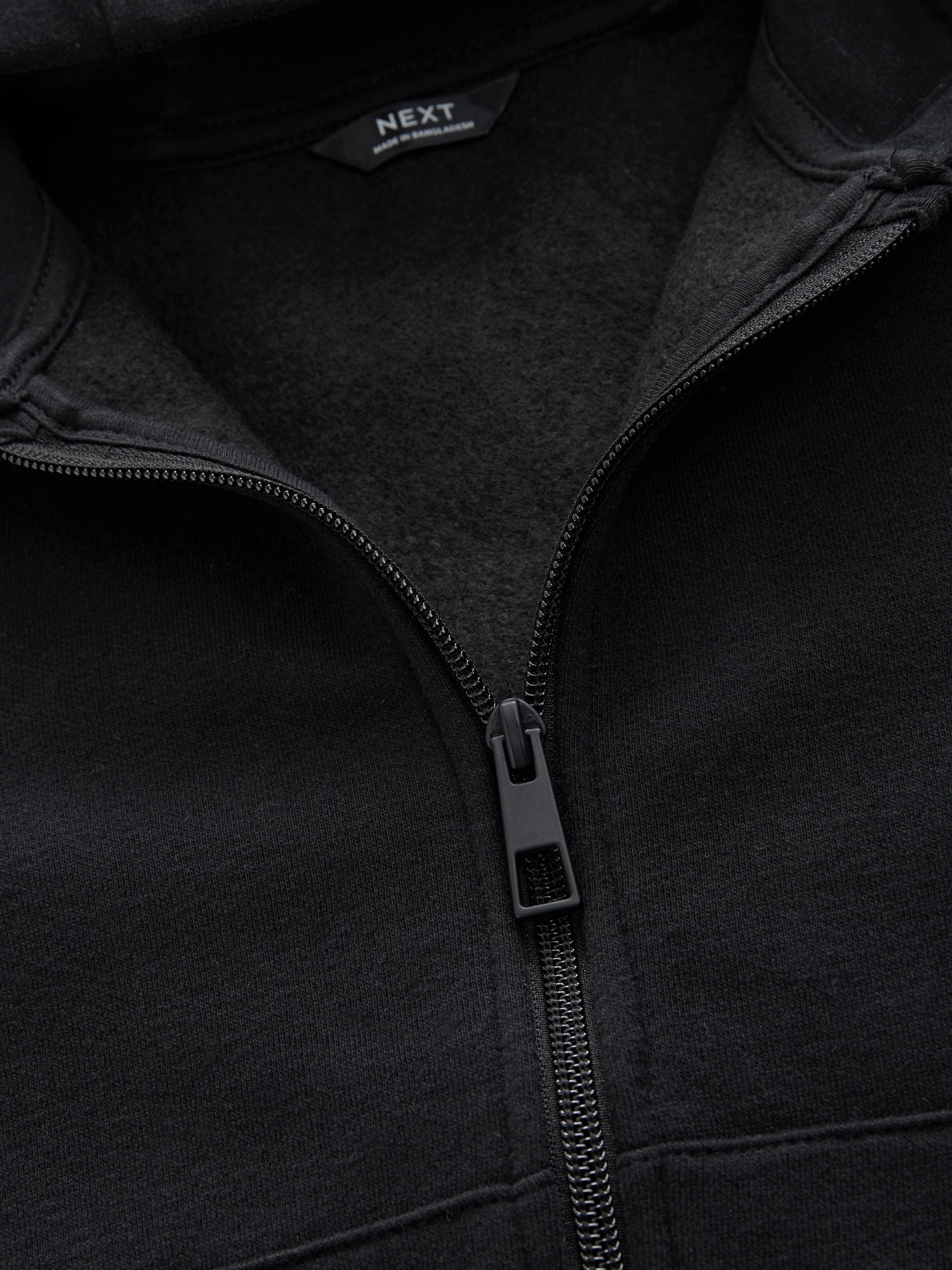 There's nothing quite like a basic hoodie. The perfect throw on piece for days when you want to stay comfy, be warm and still look put together, our black zip-through hoodie has you covered. Made from a soft cotton rich blend, this piece features a kangaroo pocket, soft waffle hood lining and ribbed cuffs. Available in a range of colours, this is one style staple your wardrobe needs. Cotton rich Zip-up fastening Kangaroo pocket Soft waffle hood lining Machine washable. 80% Cotton, 20% Recycled polyester. Country of Origin: Bangladesh