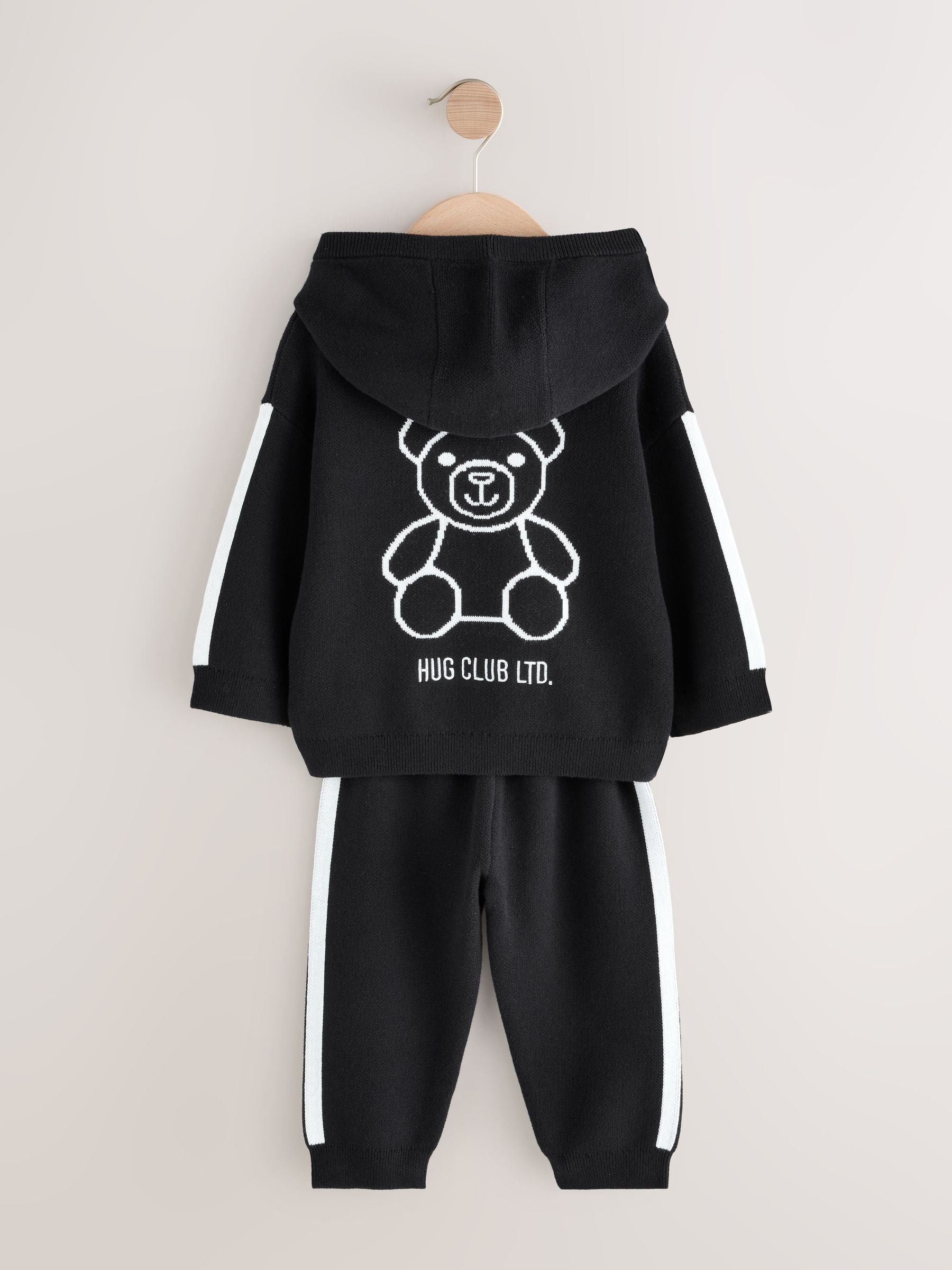 Black/White Bear Knitted Hoodie and Joggers Set (3mths-7yrs)