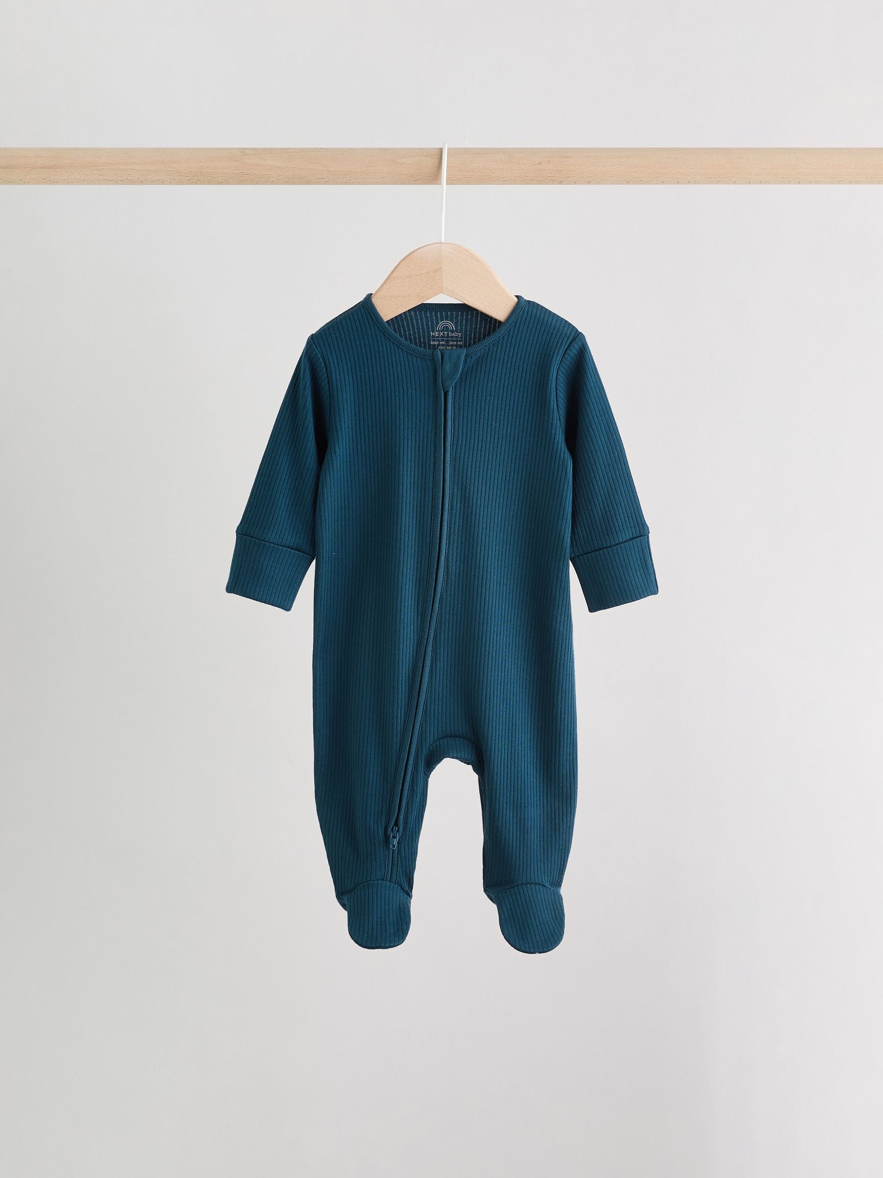Blue 3 Pack Baby Two Way Zip Sleepsuits (0-2yrs)