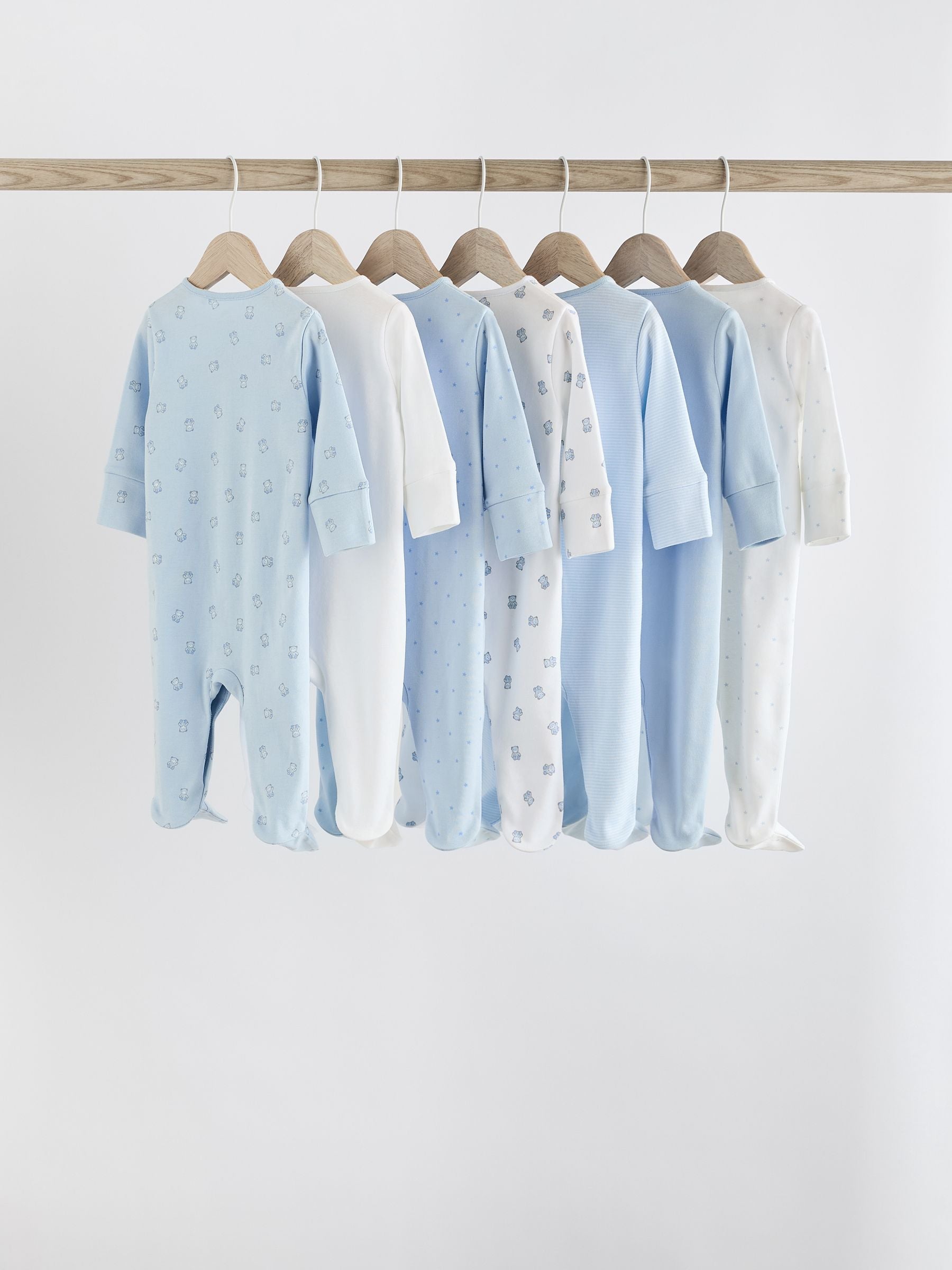 Blue 7 Pack Baby Bear Sleepsuit (0-2yrs)