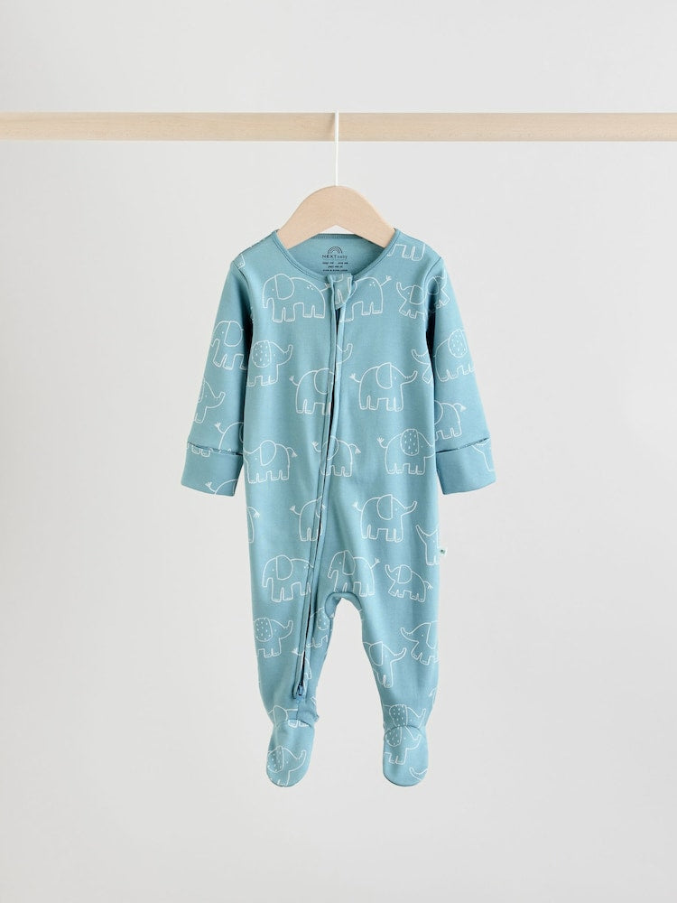 Blue Baby Linear Elephant Sleepsuits 3 Pack (0-2yrs)