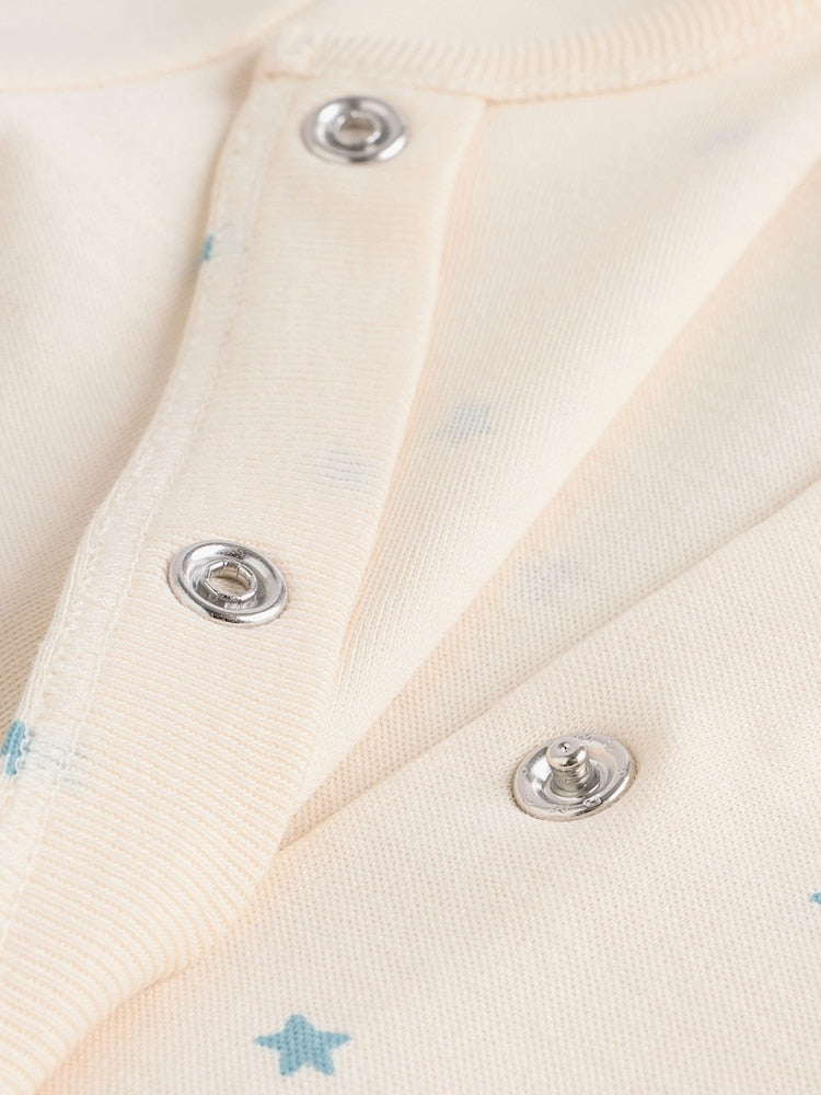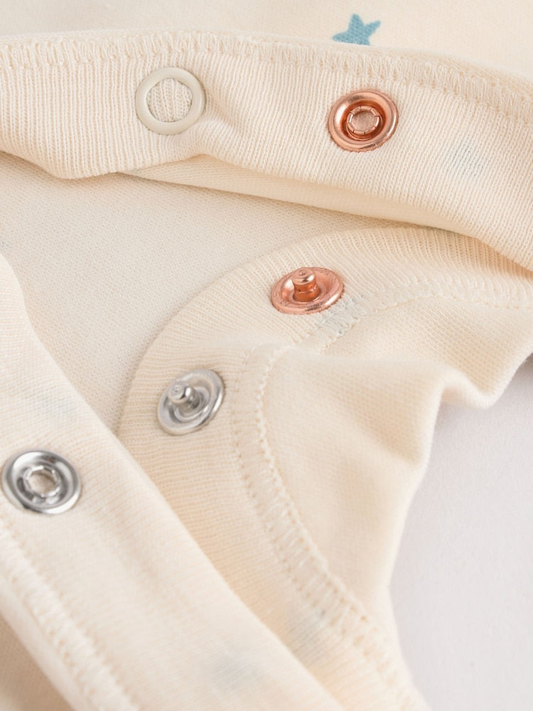 Sleepsuit, Bodysuit and Hat 100% Cotton. Bib Main 100% Cotton. Back Panel 65% Cotton, 26% Recycled polyester, 9% PU.
