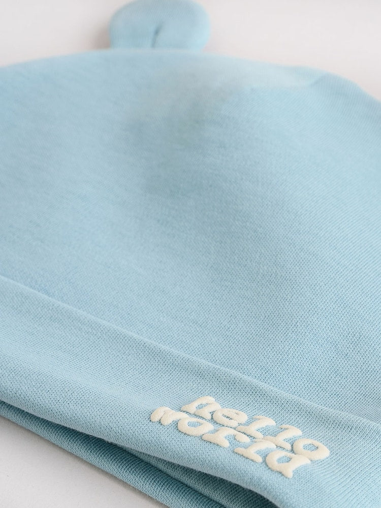 Blue Baby Sleepsuit, Bodysuit, Beanie and Bib Set 4 Piece (0-12mths) Complete your newborn's wardrobe with this versatile four-piece set designed for comfort and practicality. Crafted from 100% cotton for the sleepsuit, bodysuit, and beanie, this collection offers breathable softness against delicate skin. The coordinating bib features a durable back panel blending cotton with recycled polyester and PU coating for water resistance during feeding. Machine washable for easy care, this set simplifies dressing routines while supporting sustainable practices through recycled materials. Ideal for babies from birth to 12 months, each piece works independently or together for layered styling through Egypt's cooler months.