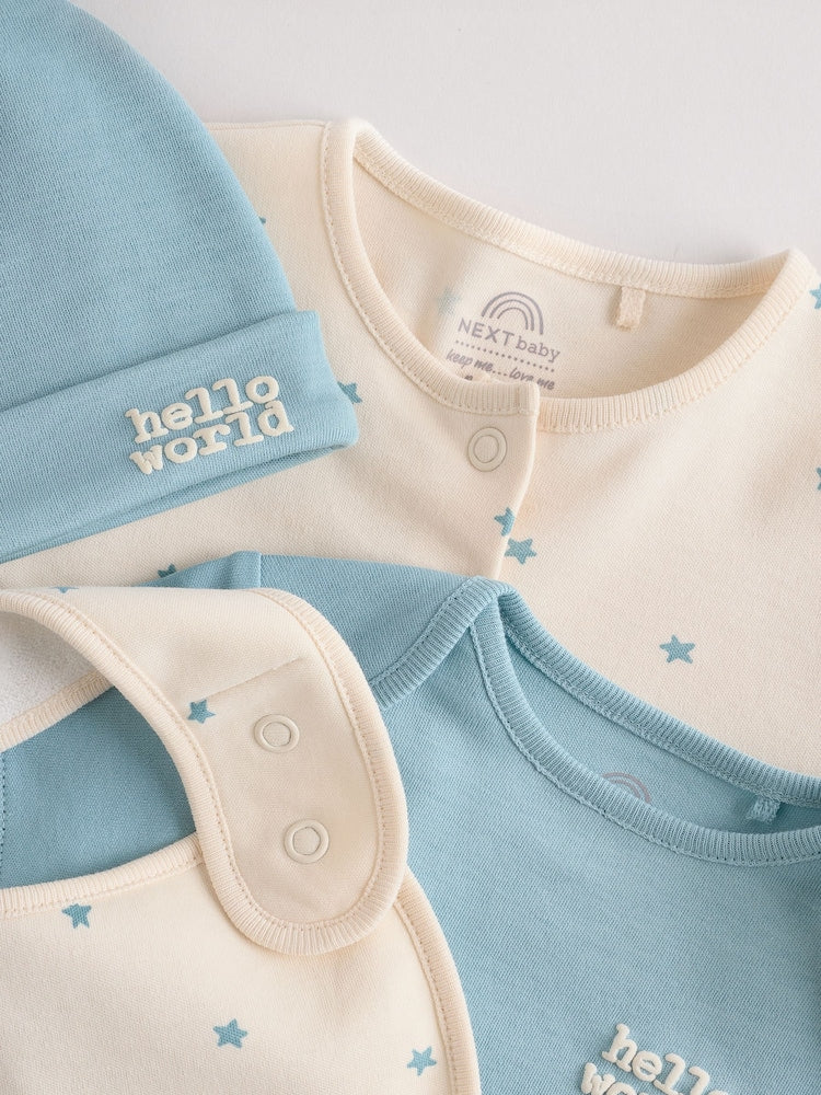 Blue Baby Sleepsuit, Bodysuit, Beanie and Bib Set 4 Piece (0-12mths)