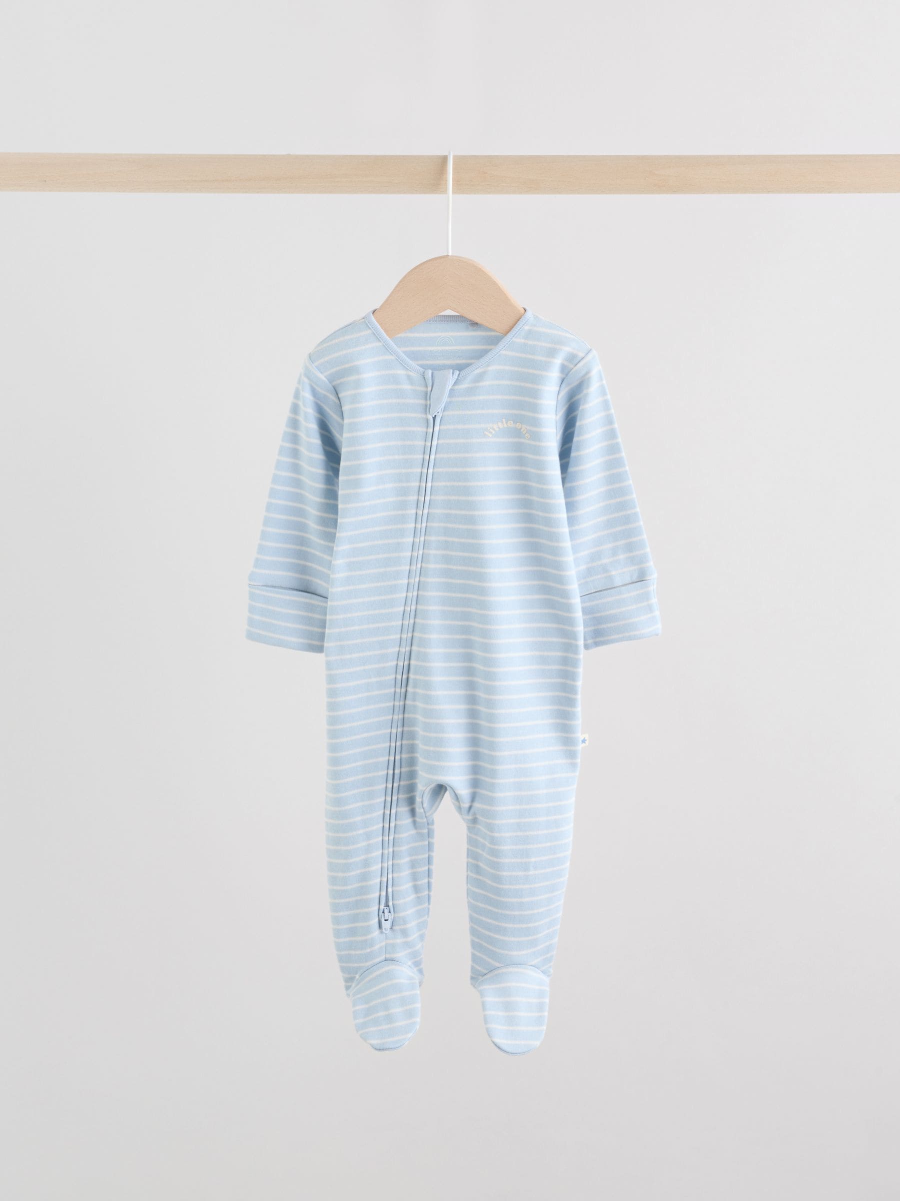 This 3-pack of blue sleepsuits is perfect for keeping them stocked up in sleepwear, made from super soft cotton with a 2-way zip fastening for easy changing. Each sleepsuit has inner lined feet, with turn-back scratch mitts up to 3-6 months and an anti-slip sole print from 9-12 months. 3-pack 100% cotton Long sleeve Inner lined feet 2-way zip fastening Machine washable. 3 x Sleepsuit 100% Cotton. Country of Origin: India Warning: Keep away from fire and flames.