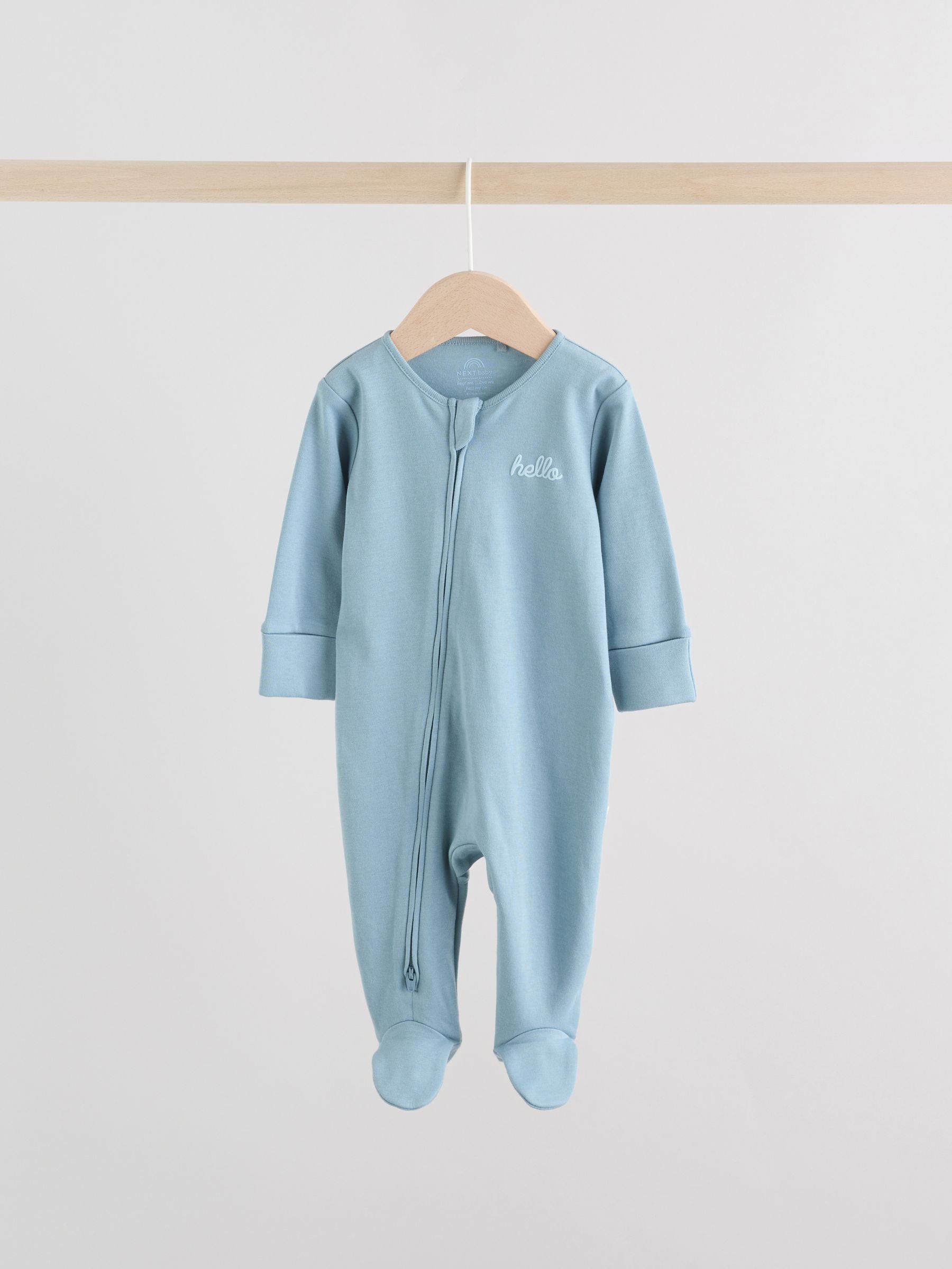 Blue Baby Two Way Zip Sleepsuits 3 Pack (0-2yrs)