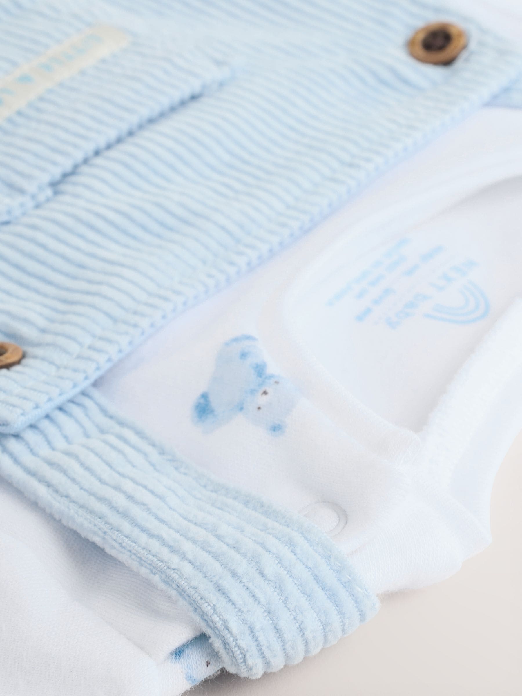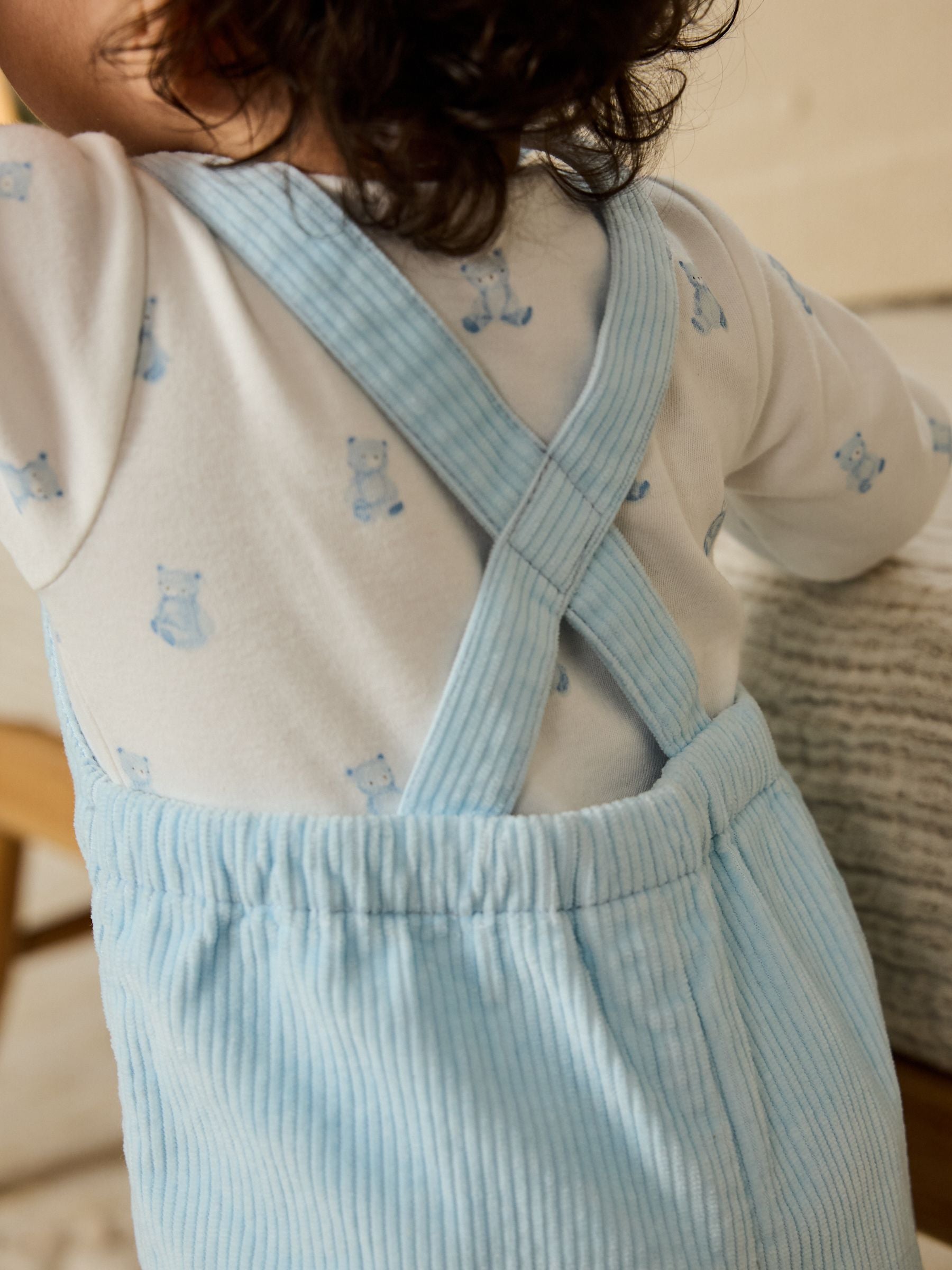 Blue Bear Cord Dungarees and Bodysuit Baby Set (0mths-2yrs)