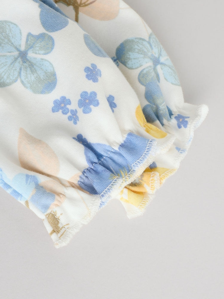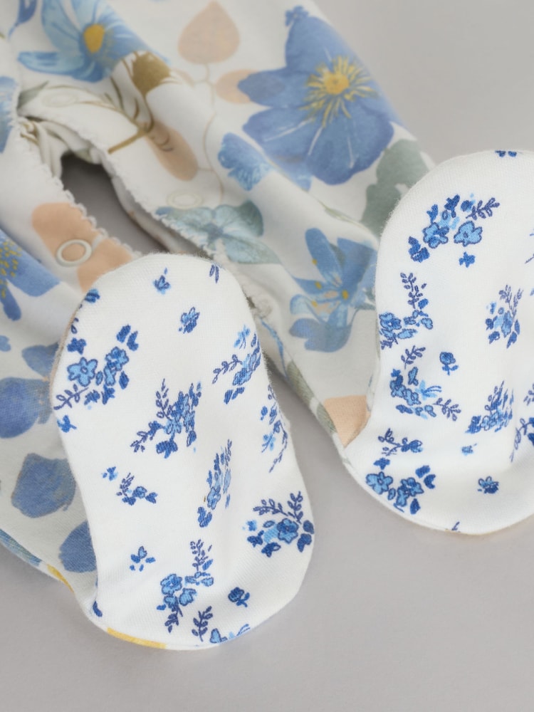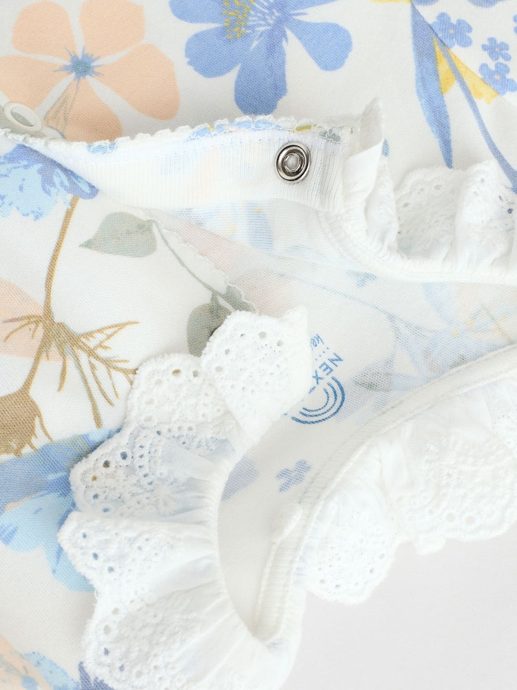Our 3 pack of baby sleepsuits make charming addition to their collection. Featuring an array of pretty floral prints, they're complete with popper fastening, long sleeves and frill detailing.