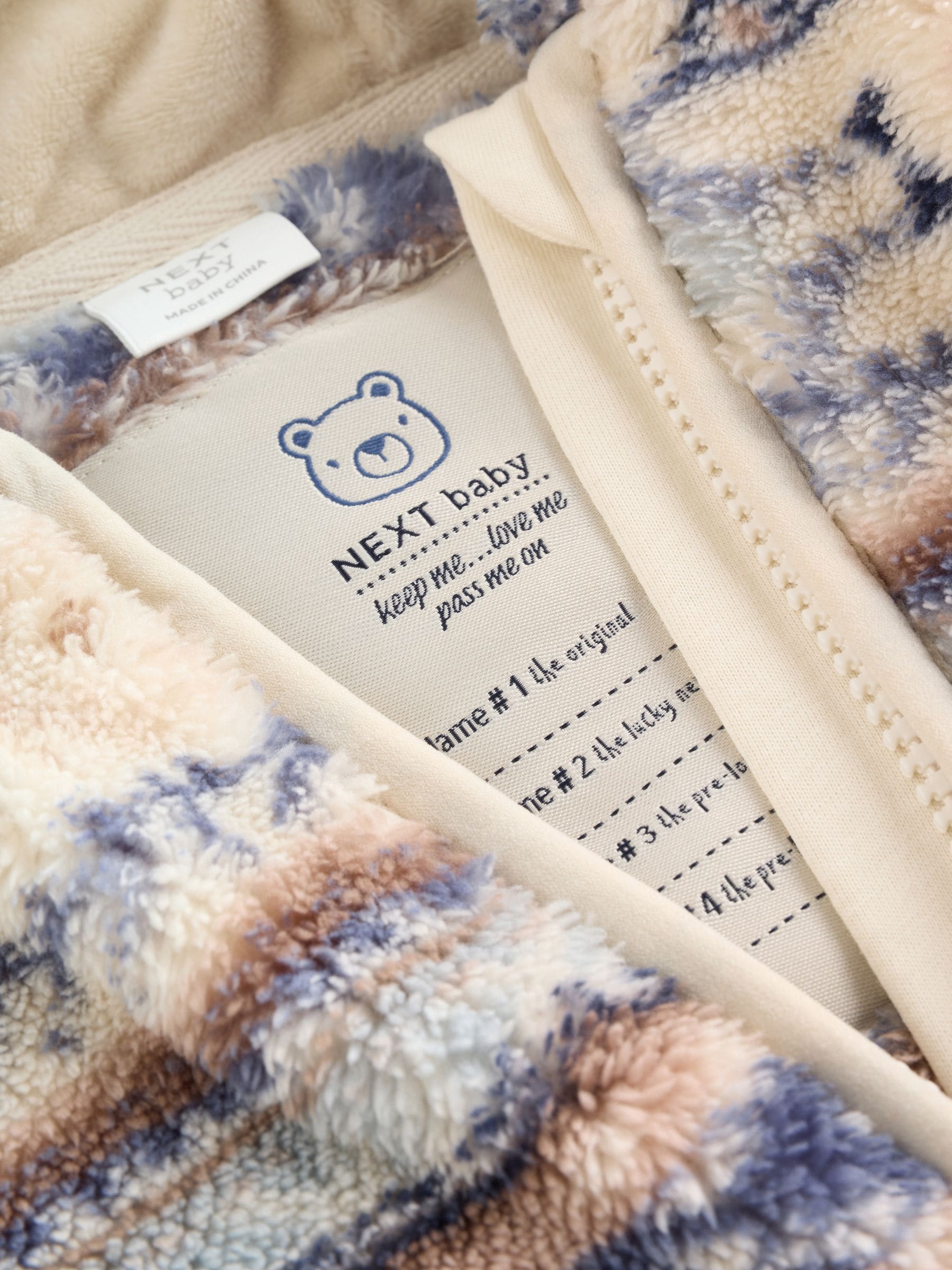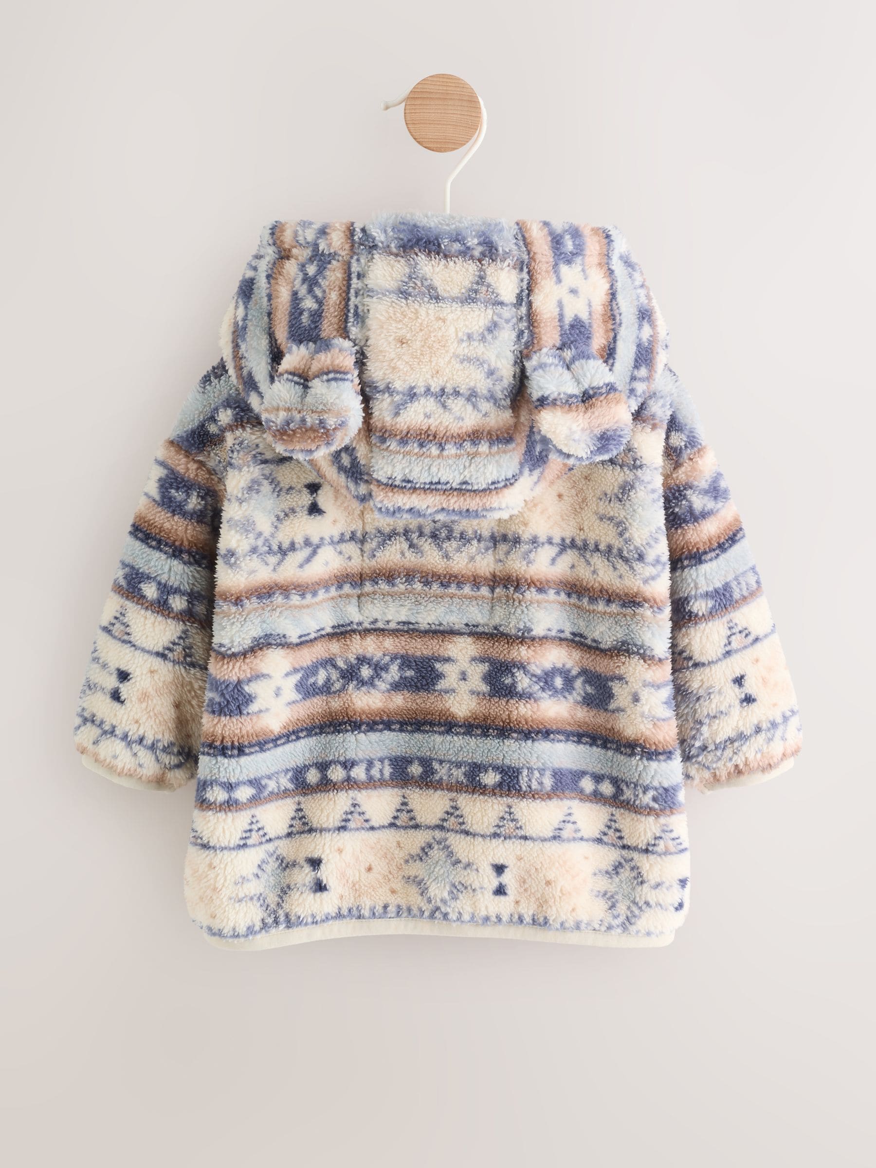 This adorable cosy jacket has a soft fleece fabric, featuring a zip fastening leading to a set-in hood with 3D ear detailing, a piped trim and a soft lining. Fleece fabric Hooded 3D ear detail Zip fastening Machine washable. Main 100% Recycled polyester. Hood Lining 100% Recycled polyester. Trim 100% Cotton. Country of Origin: China Warning: Keep away from fire and flames.