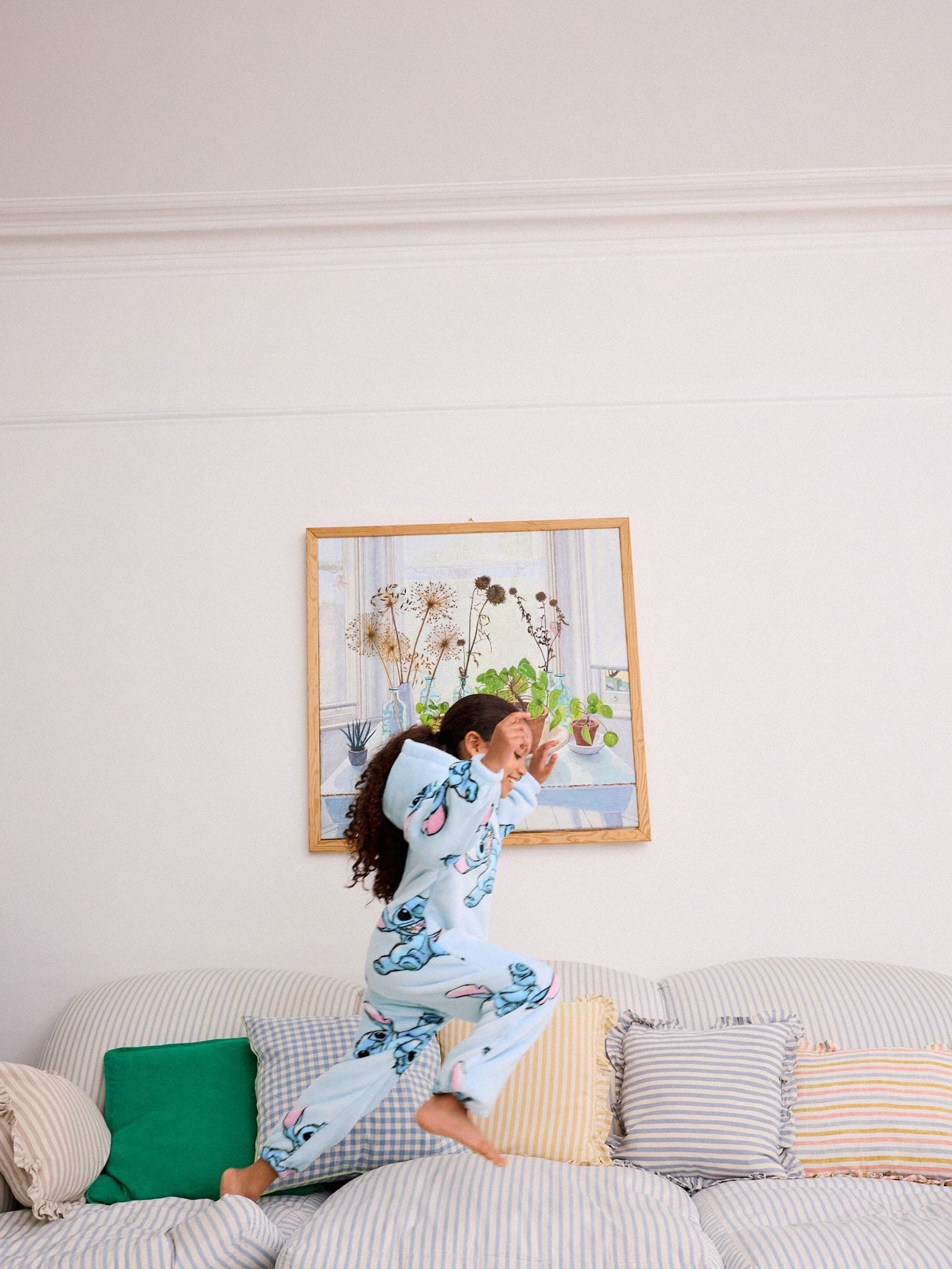 Whether it's lazy Sunday mornings or days off poorly from school, she'll be thankful of this ultra-cosy fleece all-in-one. In an officially licensed all-over print featuring Stitch from Lilo and Stitch, the all-in-one has a full-zip fastening with a set-in hood. Regular fit Fleece fabric Licensed Stitch print Zip fastening Set-in hood Machine washable. 75% Recycled polyester, 25% Polyester. Country of Origin: China Warning: Keep away from fire and flames.