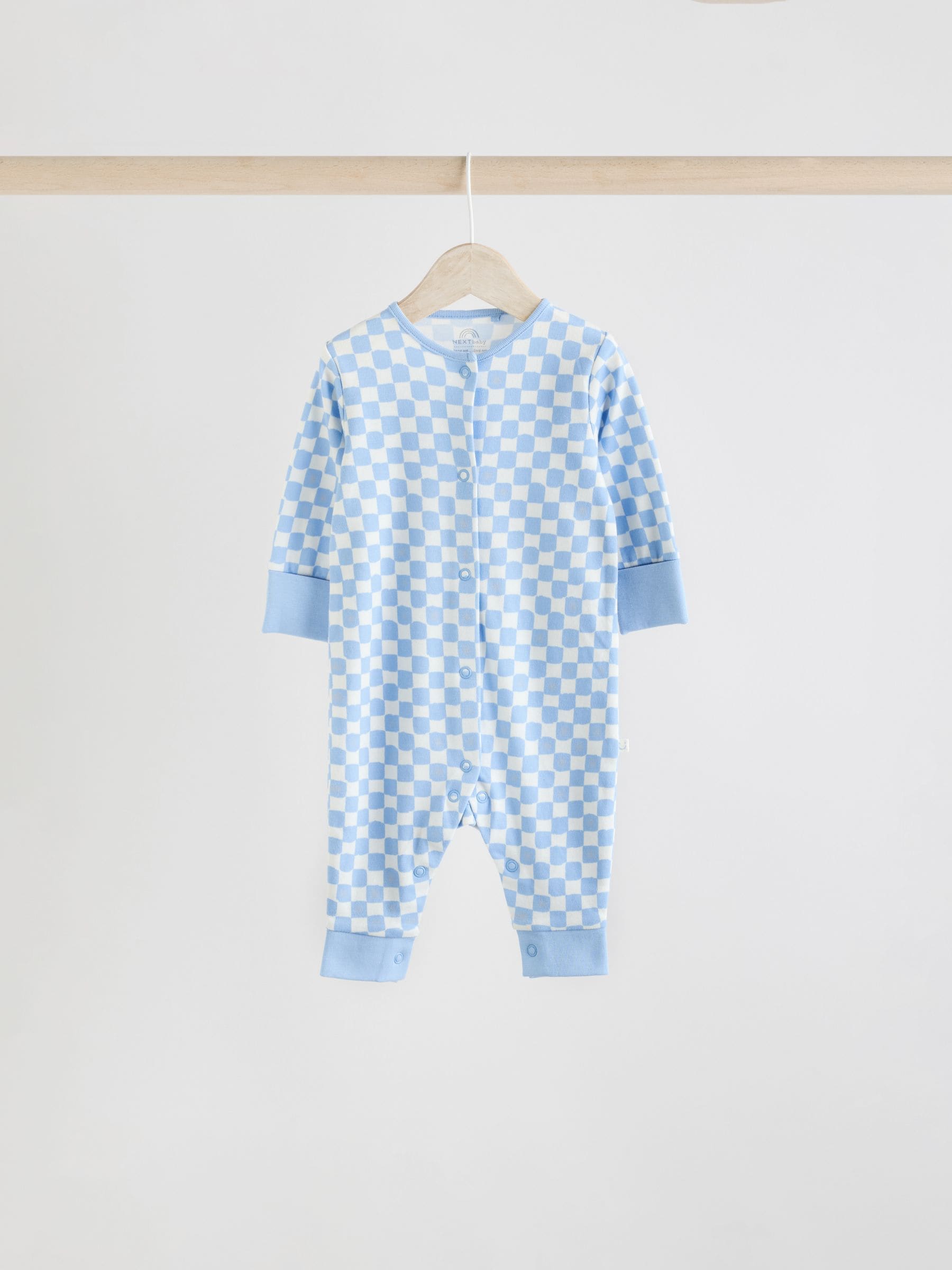 Made from supersoft cotton, this 4 pack of footless sleepsuits are coated in bright blue designs and complete with popper fastening for easy dressing. Ideal for stocking up on wardrobe essentials. 4 pack 100% cotton Popper fastening Long sleeves Machine washable. 4 x Sleepsuit 100% Cotton. Country of Origin: India Warning: Keep away from fire and flames.