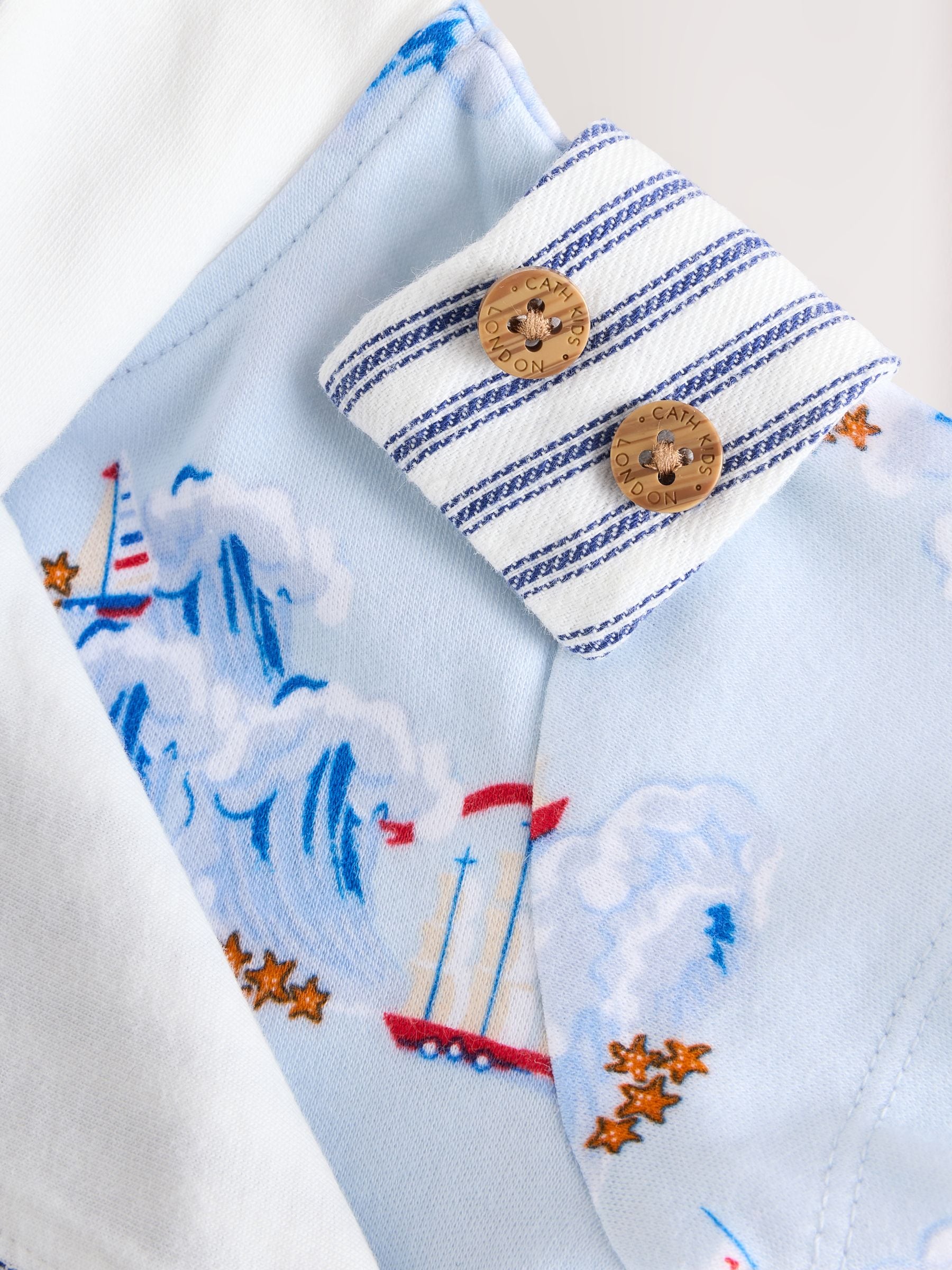 This 2-piece set features Cath Kidston's signature look, including a short sleeve bodysuit with collar detailing and an all-over boat print with a popper fastening for easy wear, alongside a pair of striped dungarees with an embroidered boat to the centre, finished with button shoulder straps and button detailing to the sides. 2-piece set Short sleeve bodysuit All-over print Popper fastening Cotton dungarees Embroidered boat motif Button shoulder straps Button side detailing Machine washable. Bodysuit and Dungaree 100% Cotton. Country of Origin: Sri Lanka Warning: Keep away from fire and flames.