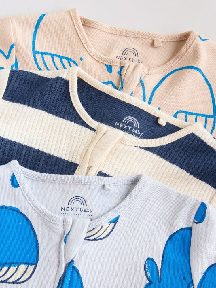 Blue Whale Two Way Zip Baby Sleepsuits 3 Pack (0mths-3yrs)