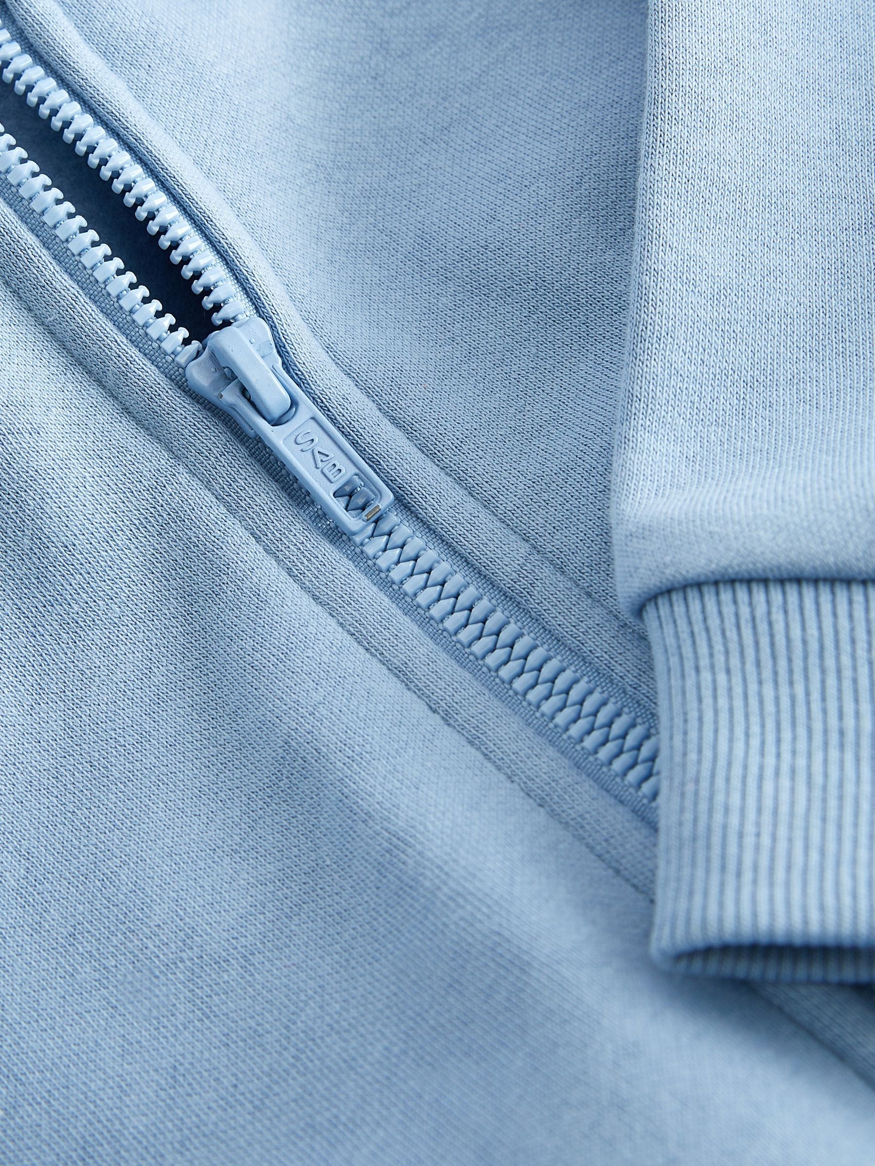 Your little dude will love this blue cotton-rich jersey fabric hoodie, featuring a full zip fastening, a set-in hood and dropped shoulders, finished with dual side pockets and ribbed hems. Regular fit Cotton-rich fabric Zip fastening Set-in hood Drop shoulders Side pockets Ribbed hems Machine washable. 80% Cotton, 20% Polyester. Country of Origin: Bangladesh