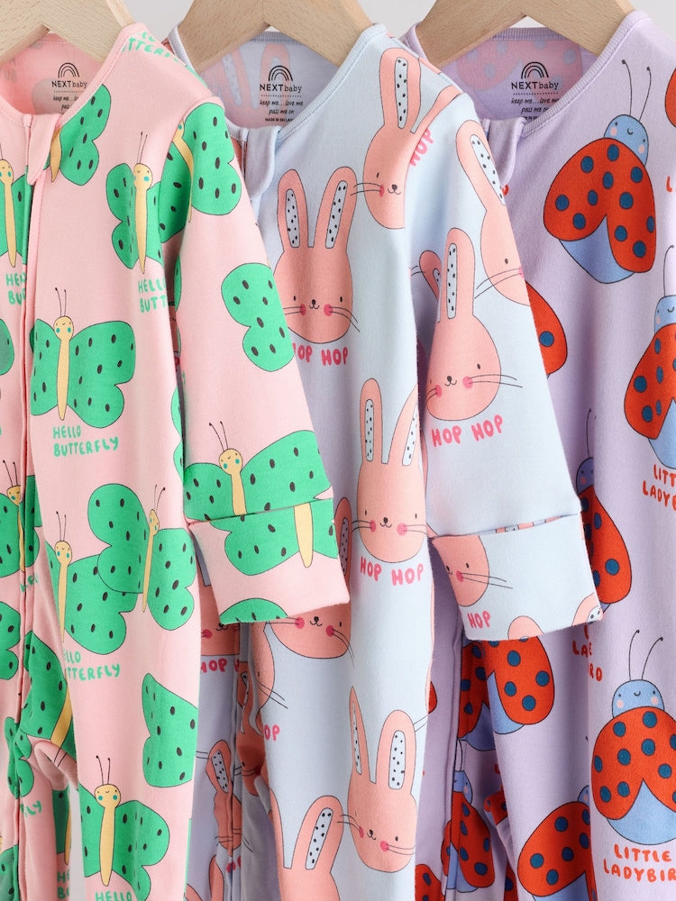 Bright Two Way Zip Sleepsuits 3 Pack (0-2yrs)
