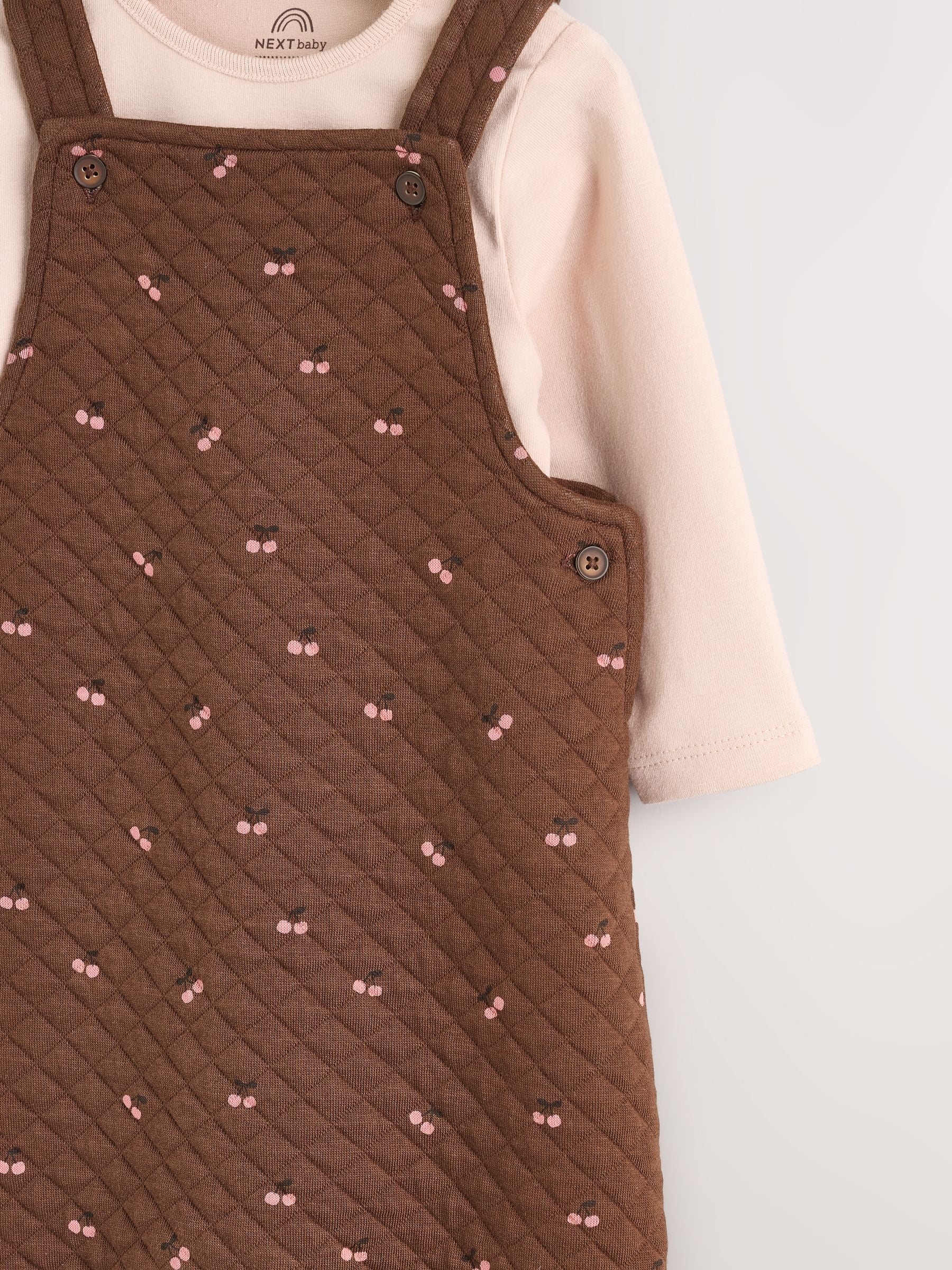 Brown Cherry Quilted Dungaree and Bodysuit Baby 2 Piece Set (0mths-3yrs)