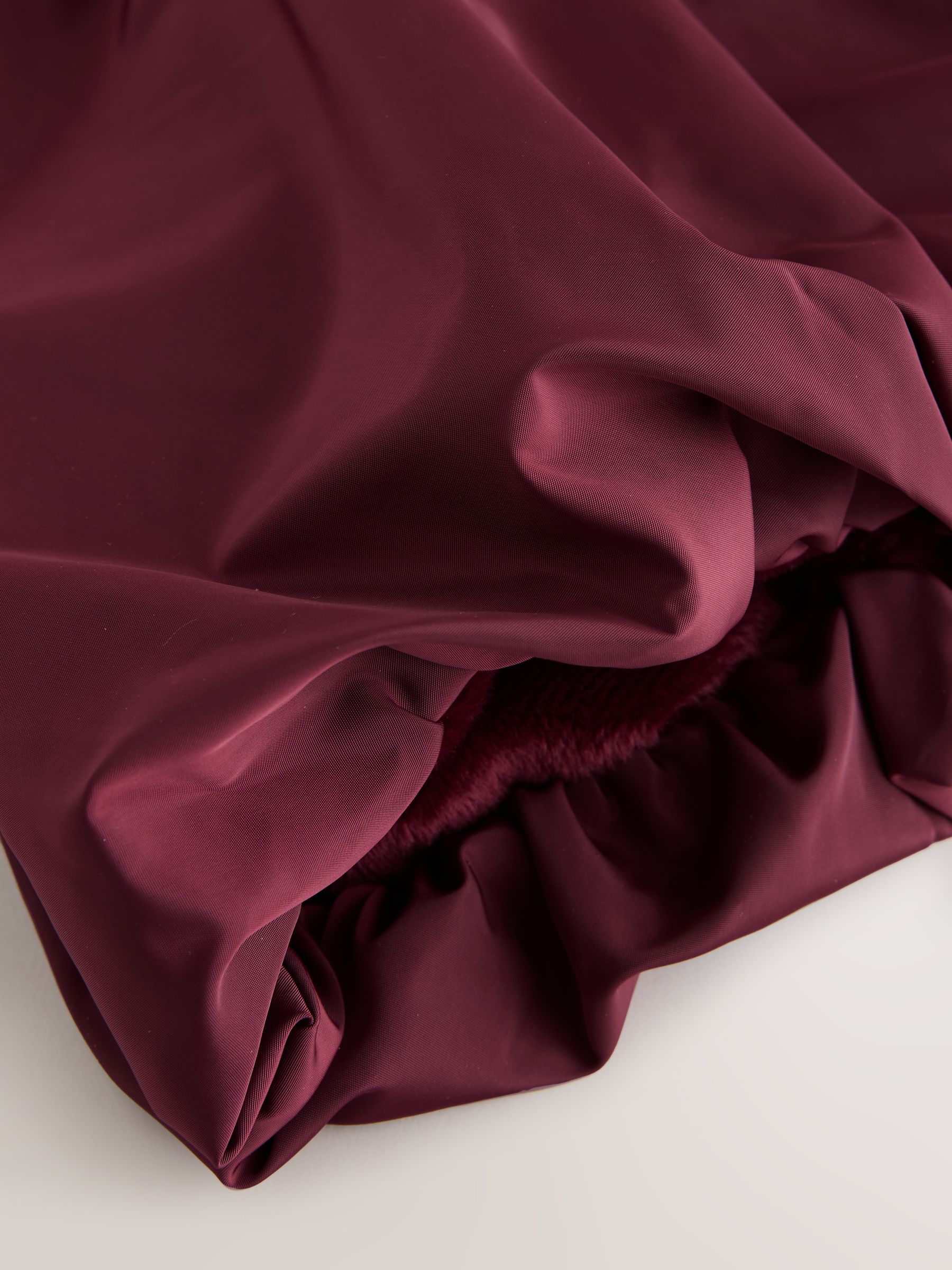 Get them ready for any weather with this elegant burgundy red skirted coat. The shower-resistant fabric and cosy faux fur lining provide extra warmth and protection from the elements, while the playful 3D bow detail on the waist and a puffball hem add a charming, fashionable touch Shower resistant Faux fur lined Faux fur hood trim Puffball hem 3D bow detail Zip and button fastening Hooded Machine washable. Main 100% Recycled polyester. Lining 100% Polyester. Sleeve Lining 100% Recycled polyester. Wadding 100% Recycled polyester. Country of Origin: China