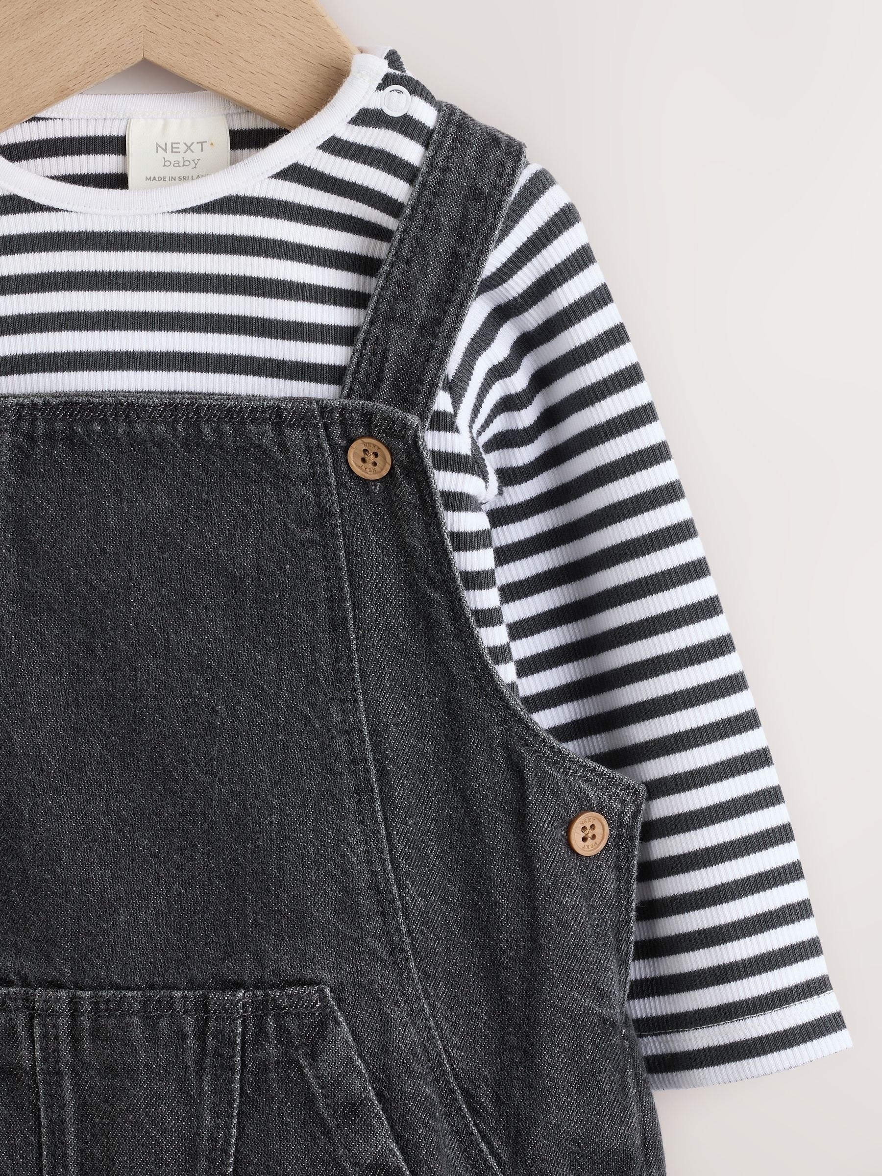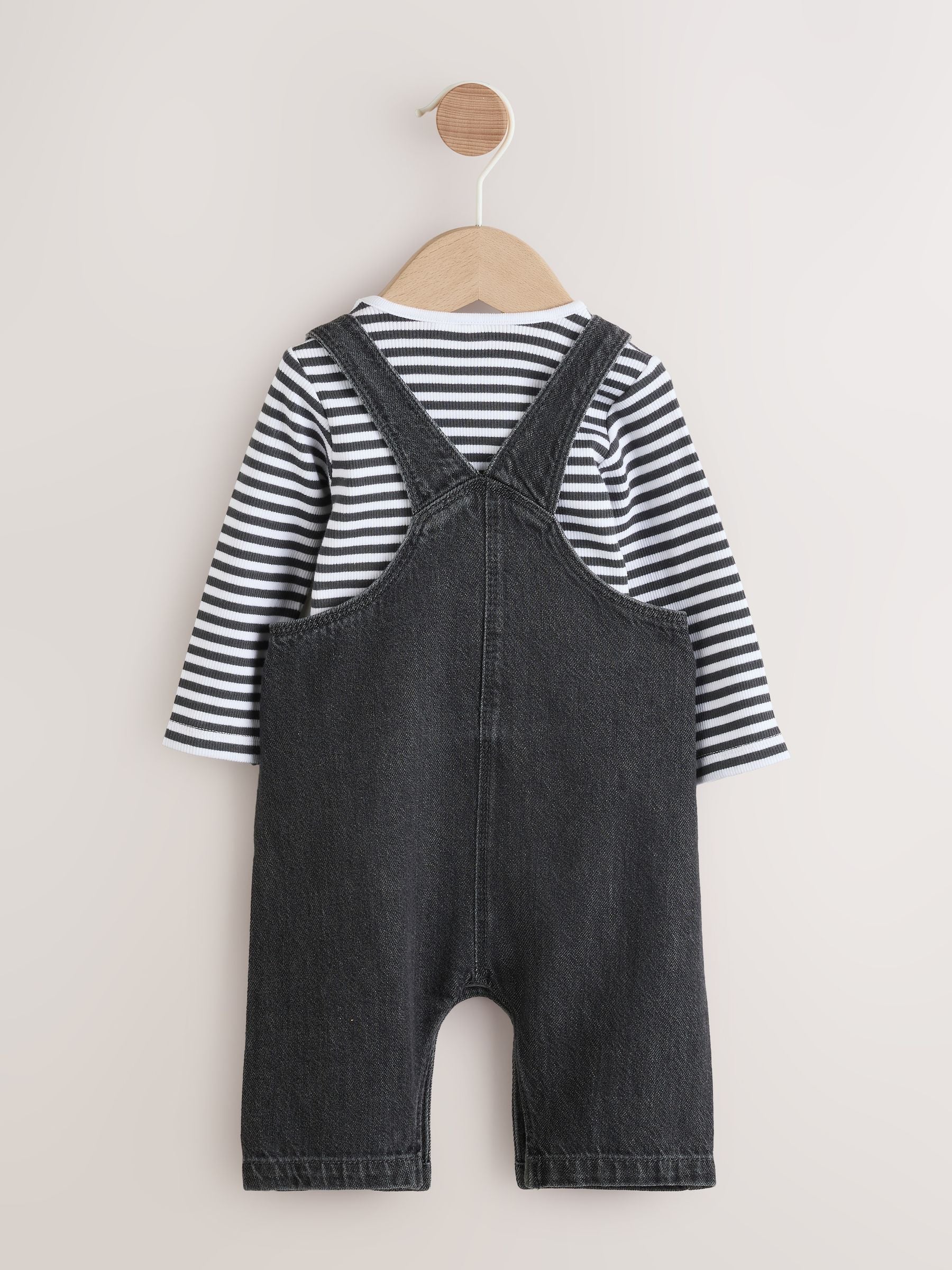Charcoal Grey Baby Denim Dungarees and Bodysuit Set (0mths-2yrs)
