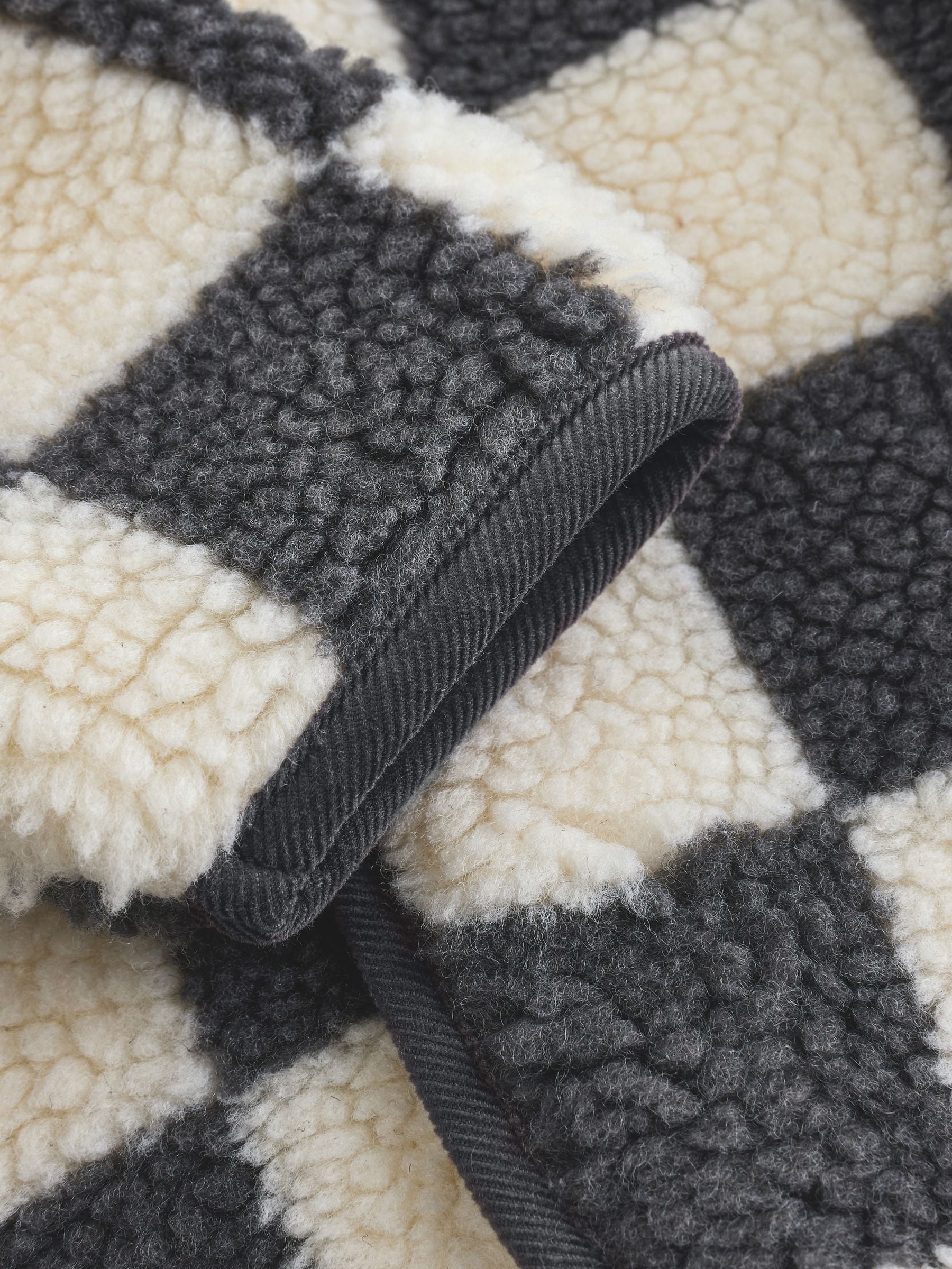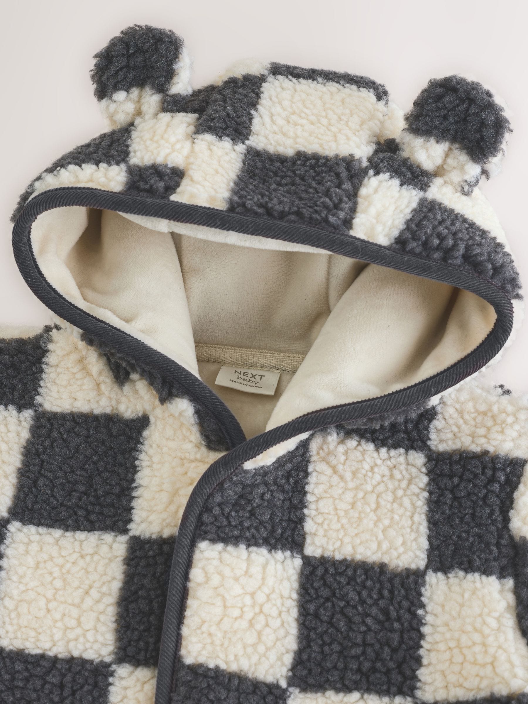 Charcoal Grey Checkerboard Hooded Baby Borg Jacket (0-18mths)