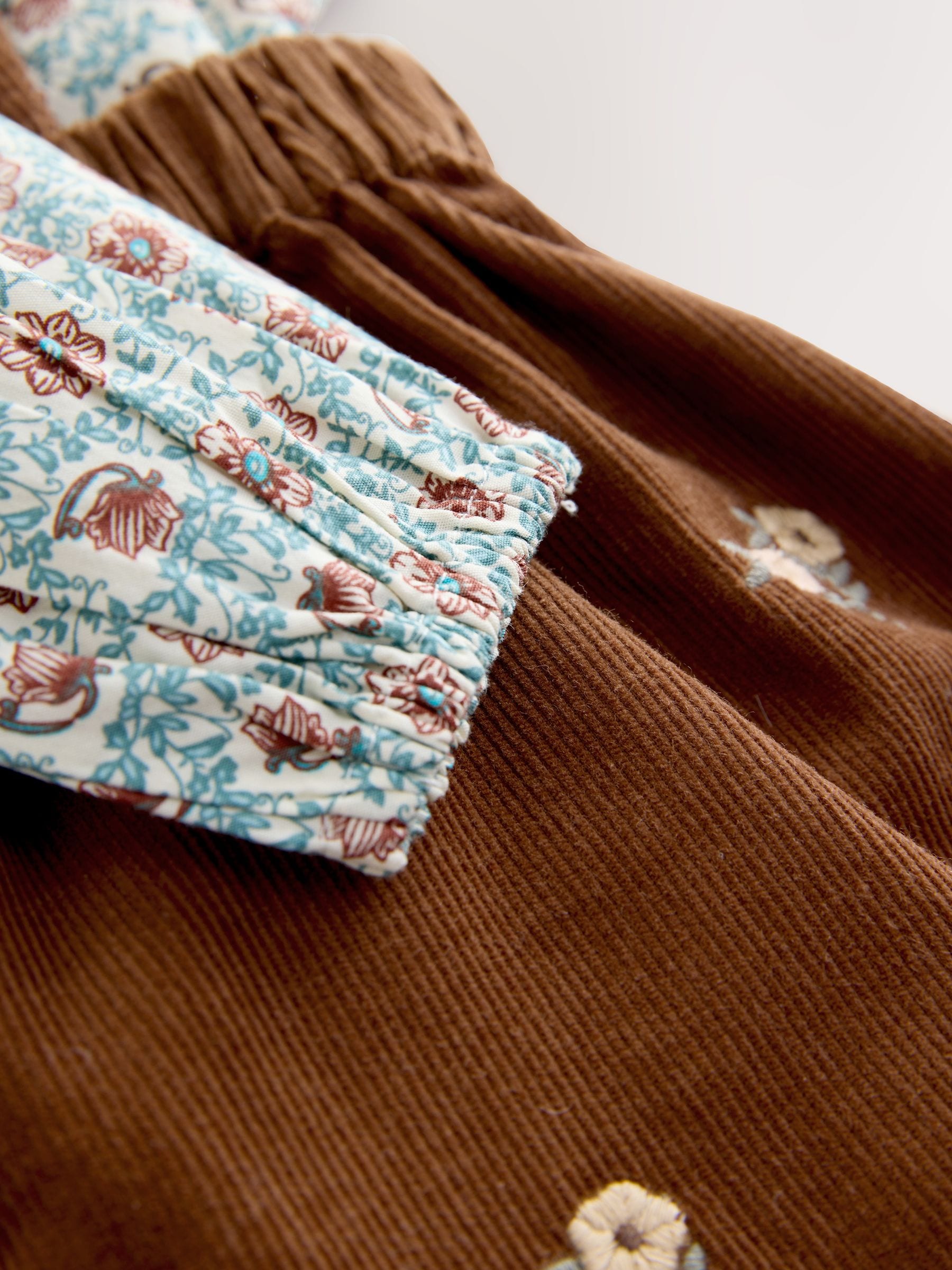 Chocolate Brown Cord Dungarees & Blouse Set (3mths-7yrs)