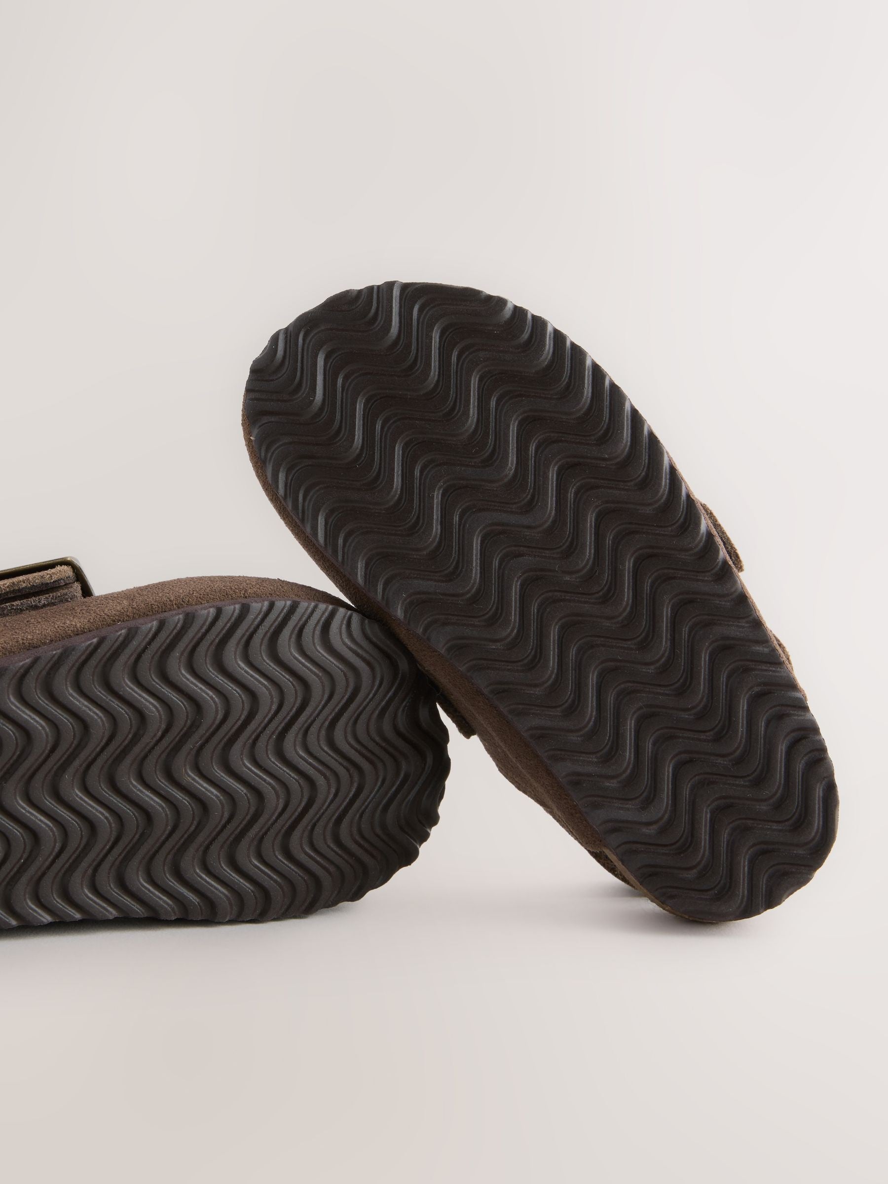 Chocolate Brown Leather Faux Fur Lined Clog Shoes