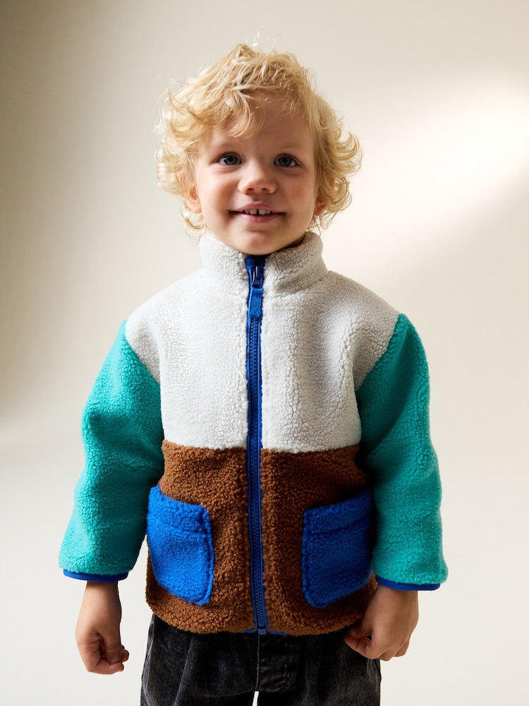 This fun colourblock funnel neck fleece is the perfect layer to keep him cosy. The soft fleece fabric and full zip through fastening provide warmth and easy wear. The contrasting block colours and funnel neck add a stylish touch to this practical piece.
