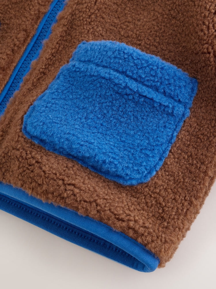 Keep him warm and stylish with this colourblock funnel neck fleece. Crafted from soft recycled polyester with a cotton lining, it features a full zip fastening for easy layering and a striking colour-block design that adds visual interest. The funnel neck and long sleeves provide extra warmth during cooler months, while the machine-washable fabric makes everyday care effortless. Perfect for active kids who need comfort without compromising on style.