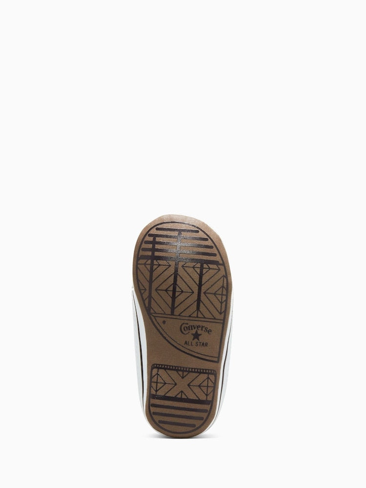 Designed for your baby's earliest adventures, the Chuck Taylor All Star Cribster combines iconic Converse style with practical comfort. The easy-on, easy-off design transitions seamlessly from tummy time to cuddle sessions, making diaper changes and outfit swaps effortless. Crafted with soft textile uppers, breathable lining, and supportive sole construction, these blue and white canvas trainers provide the gentle support growing feet need. Perfect for capturing those first precious moments in timeless style.