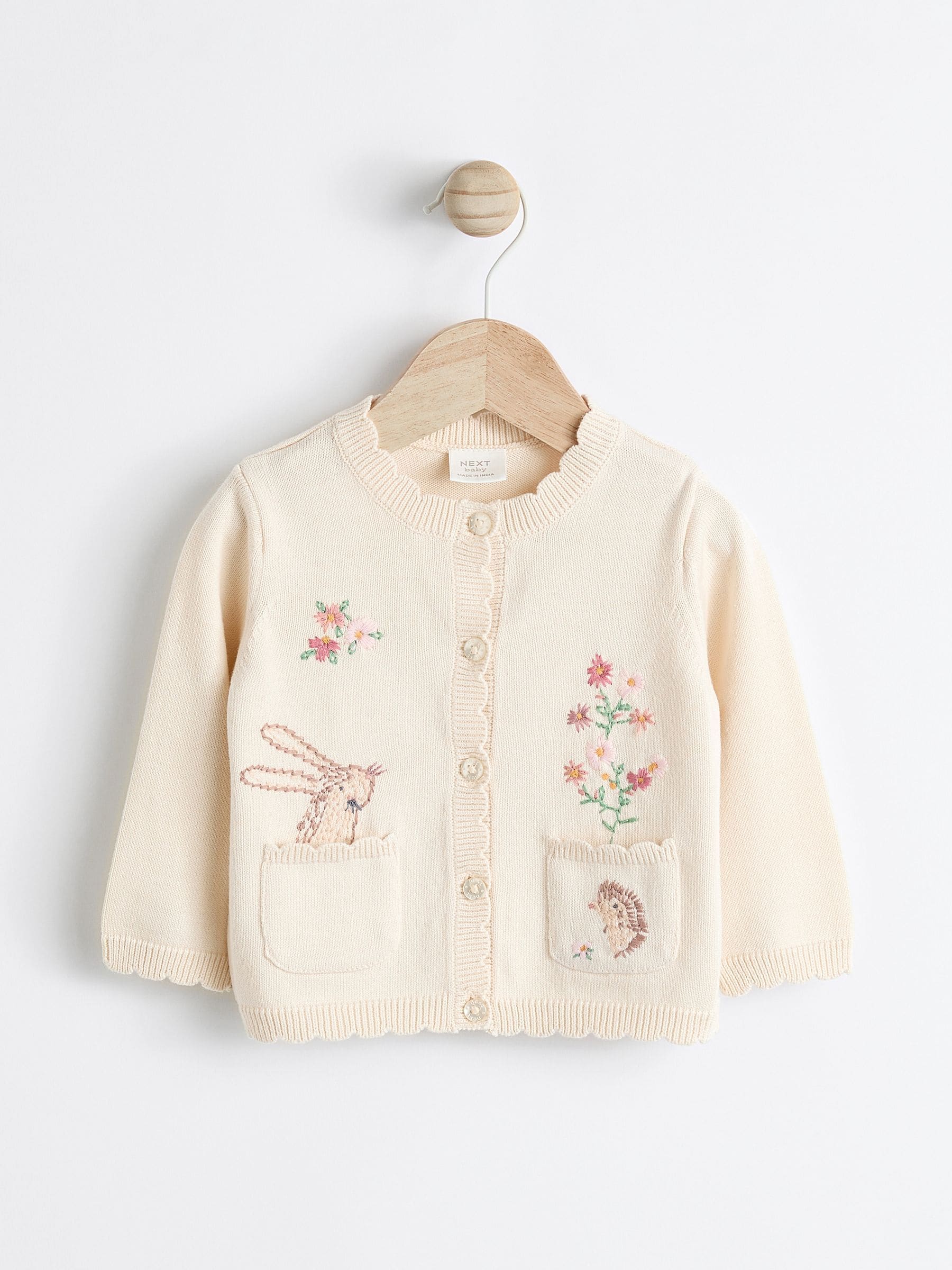 Cream Bunny 100% Cotton Pointelle Knitted Floral Flower Baby Cardigan (0mths-3yrs)