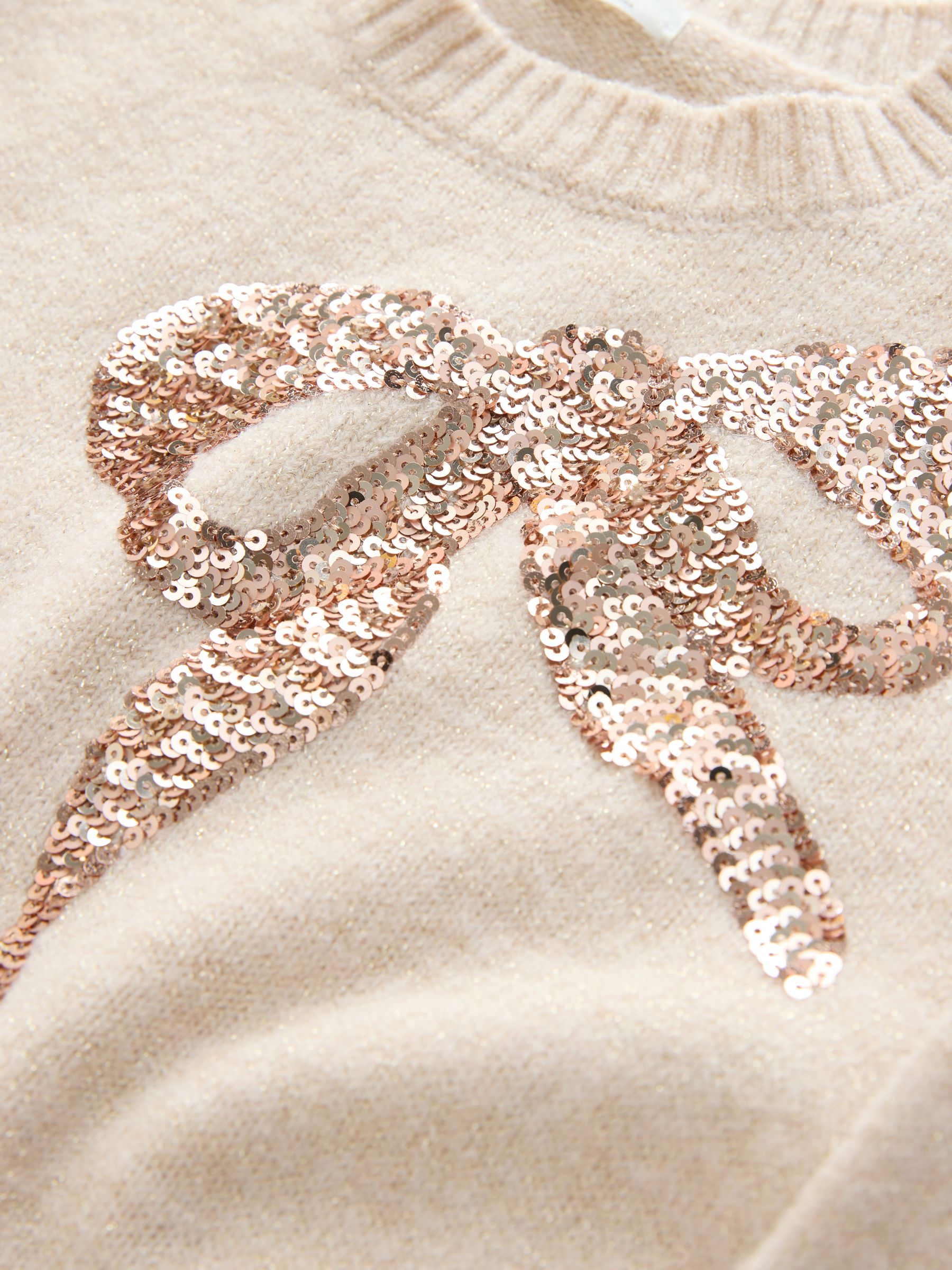 Ecru Bow Embellished Knit Jumper Dress (3-16yrs)