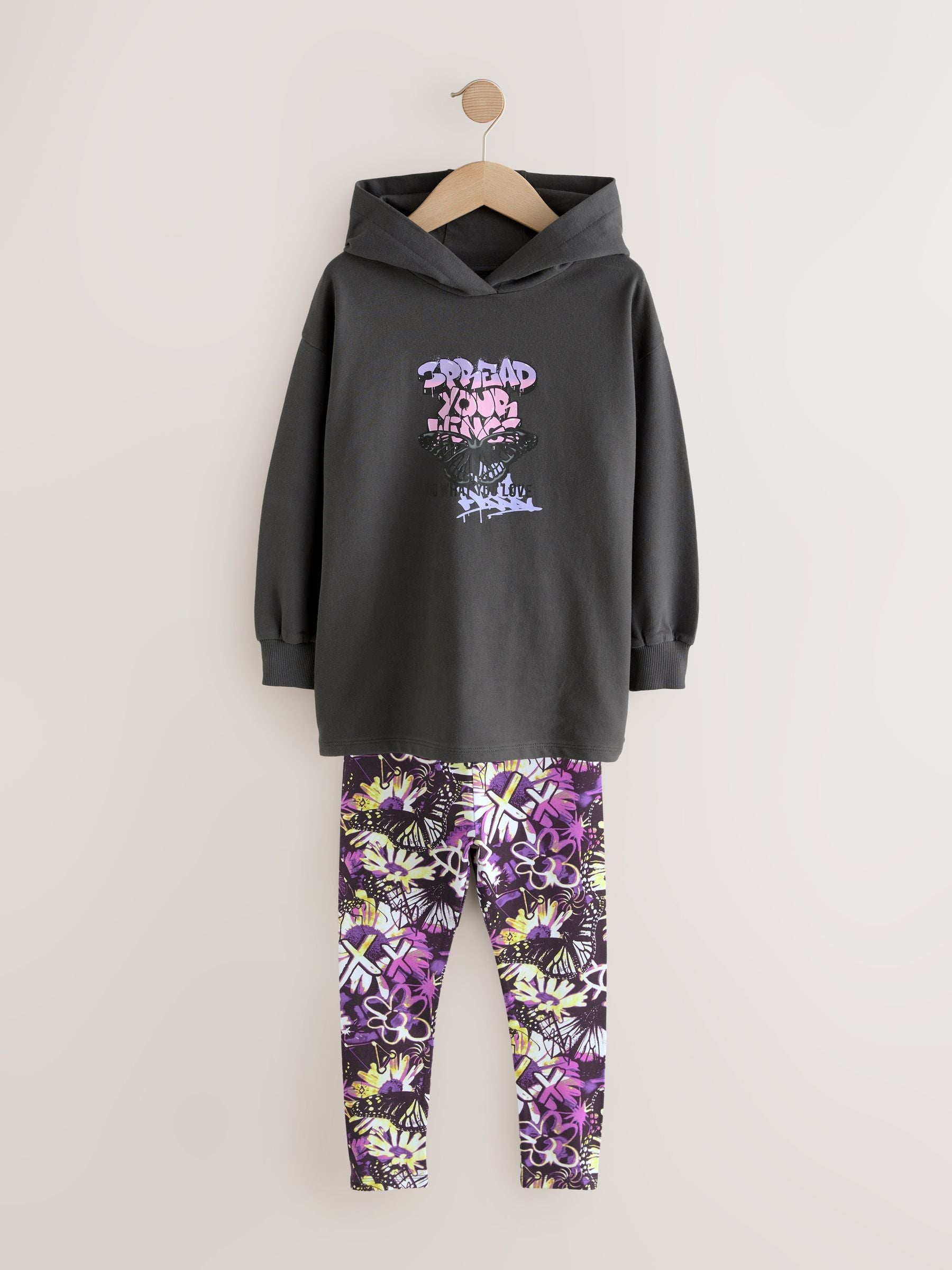 Grafitti Charcoal Grey Graphic Print Hoodie Leggings Set (3-16yrs)
