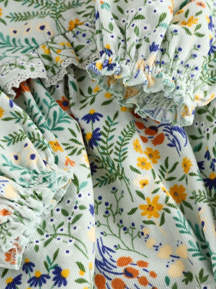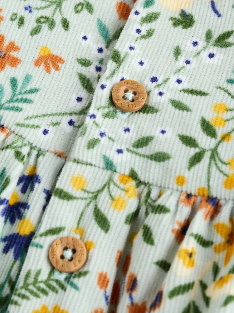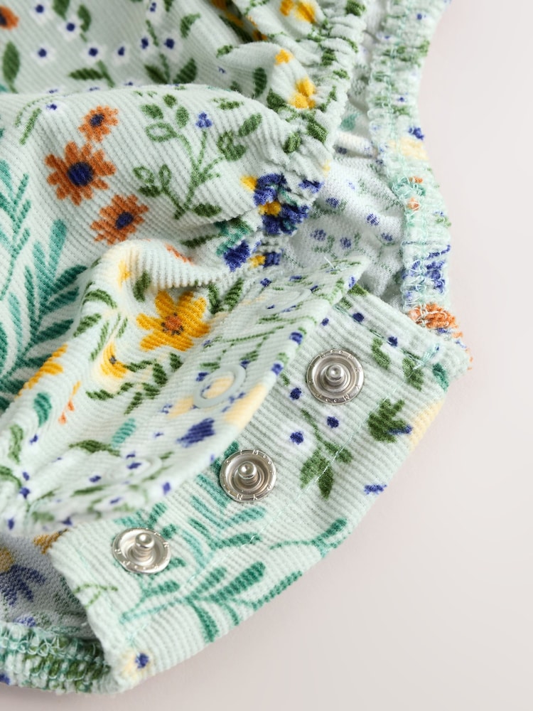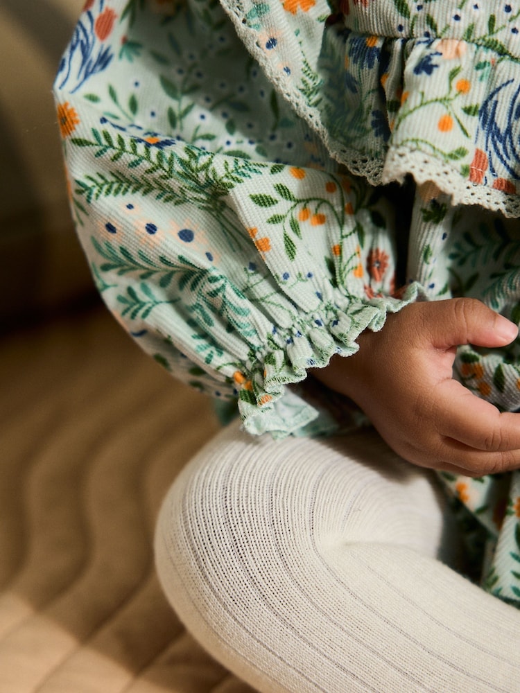 Dress your little one in timeless comfort with this charming green-floral bloomer romper set. Crafted from soft 100% cotton, the romper features delicate lace trim and a practical popper opening for quick, hassle-free diaper changes. The coordinating ecru tights (76% cotton, 22% nylon, 2% elastane) complete the look with a cosy, polished aesthetic perfect for both playtime and everyday wear. Machine washable for easy care. A versatile two-piece set that combines style with the functionality growing families need.