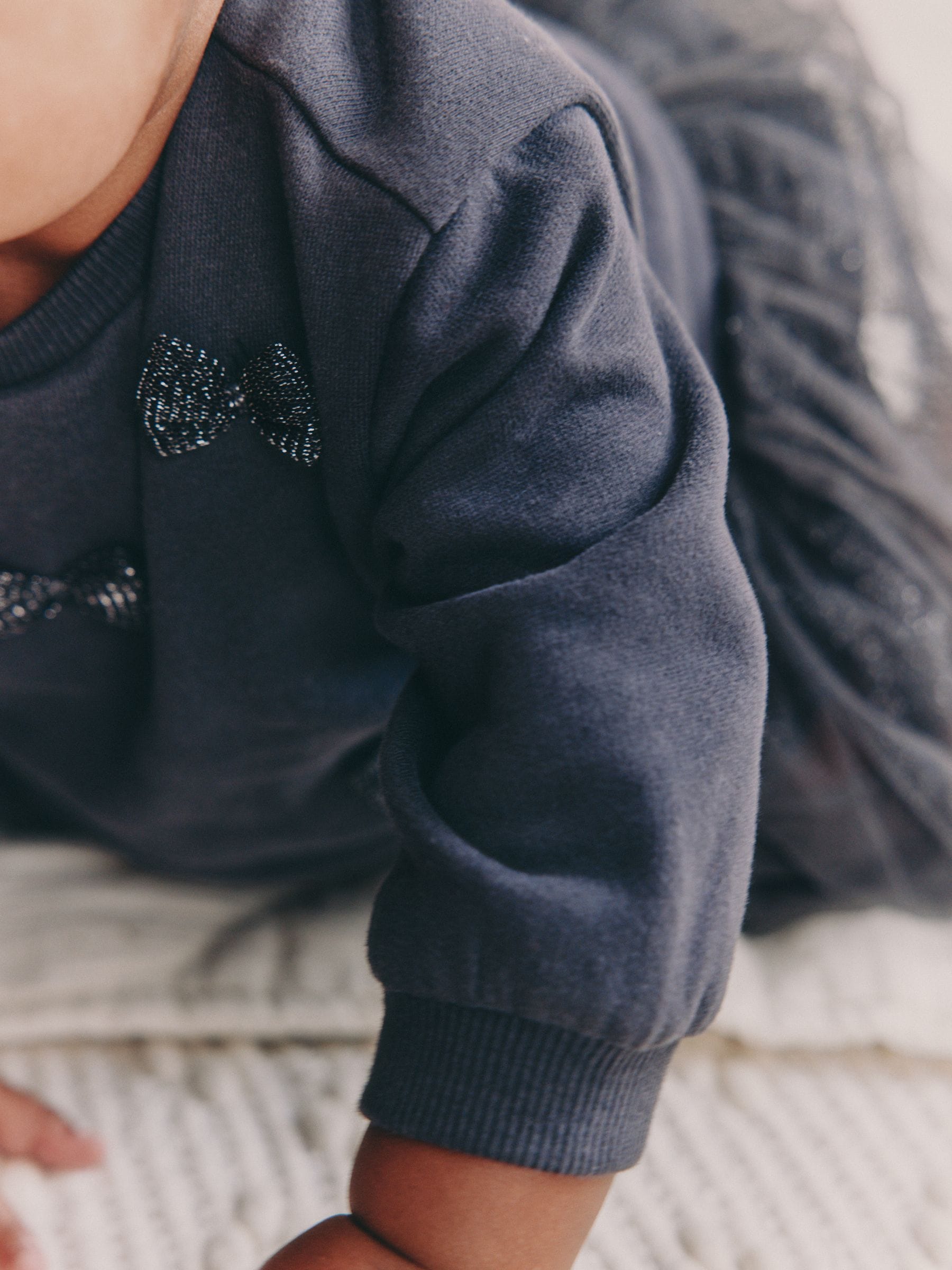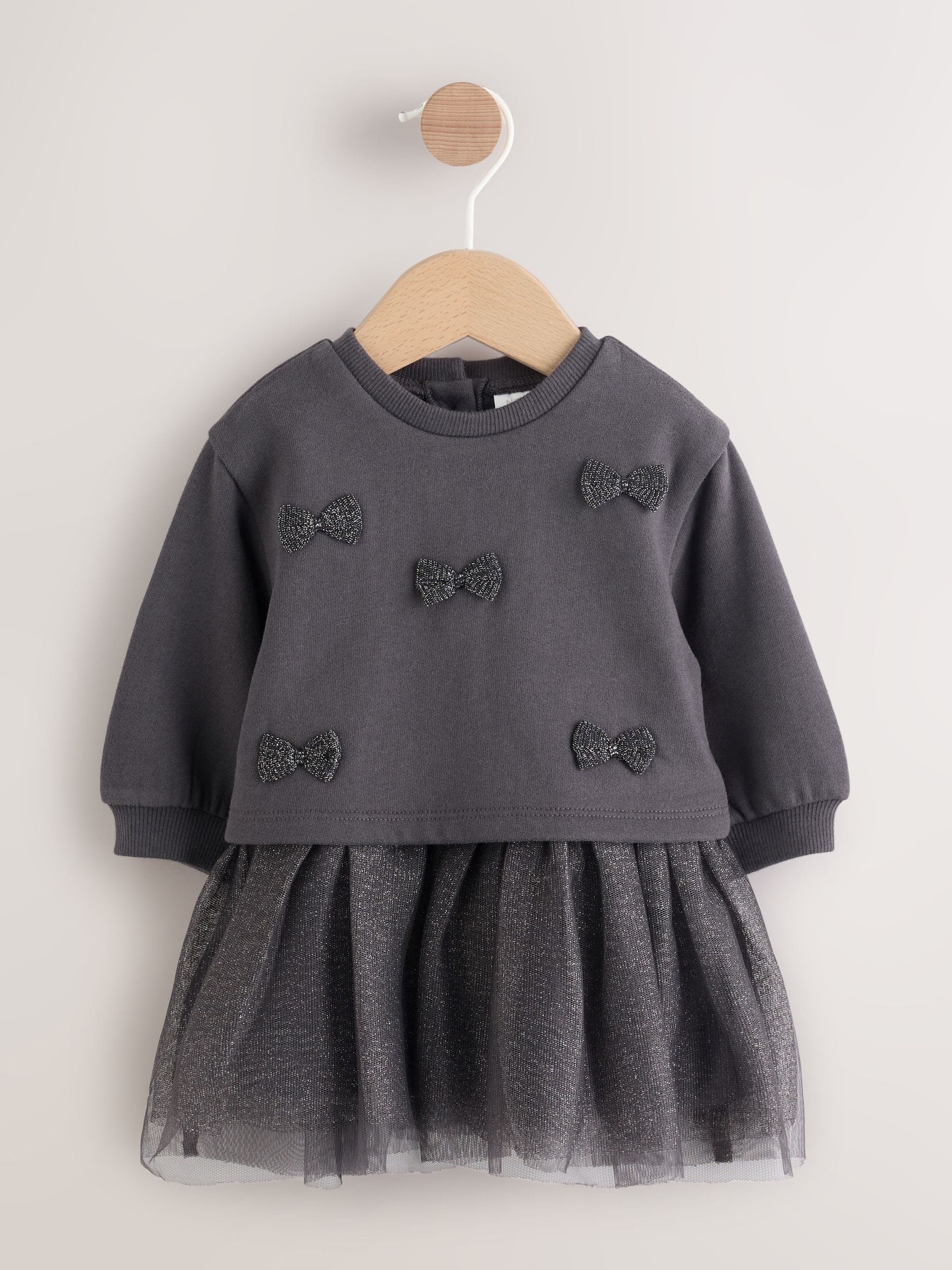 Your baby will look adorable in this pretty dress, featuring a layered design with a sweater bodice and a layered mesh skirt, finished in a soft lining. Regular fit Layered mesh skirt Soft lining Machine washable. Main 90% Cotton, 10% Recycled polyester. Inner Lining 100% Cotton. Outer Lining 71% Nylon, 29% Metallised fibre. Over Skirt 100% Polyester. Country of Origin: India Warning: Keep away from fire and flames.