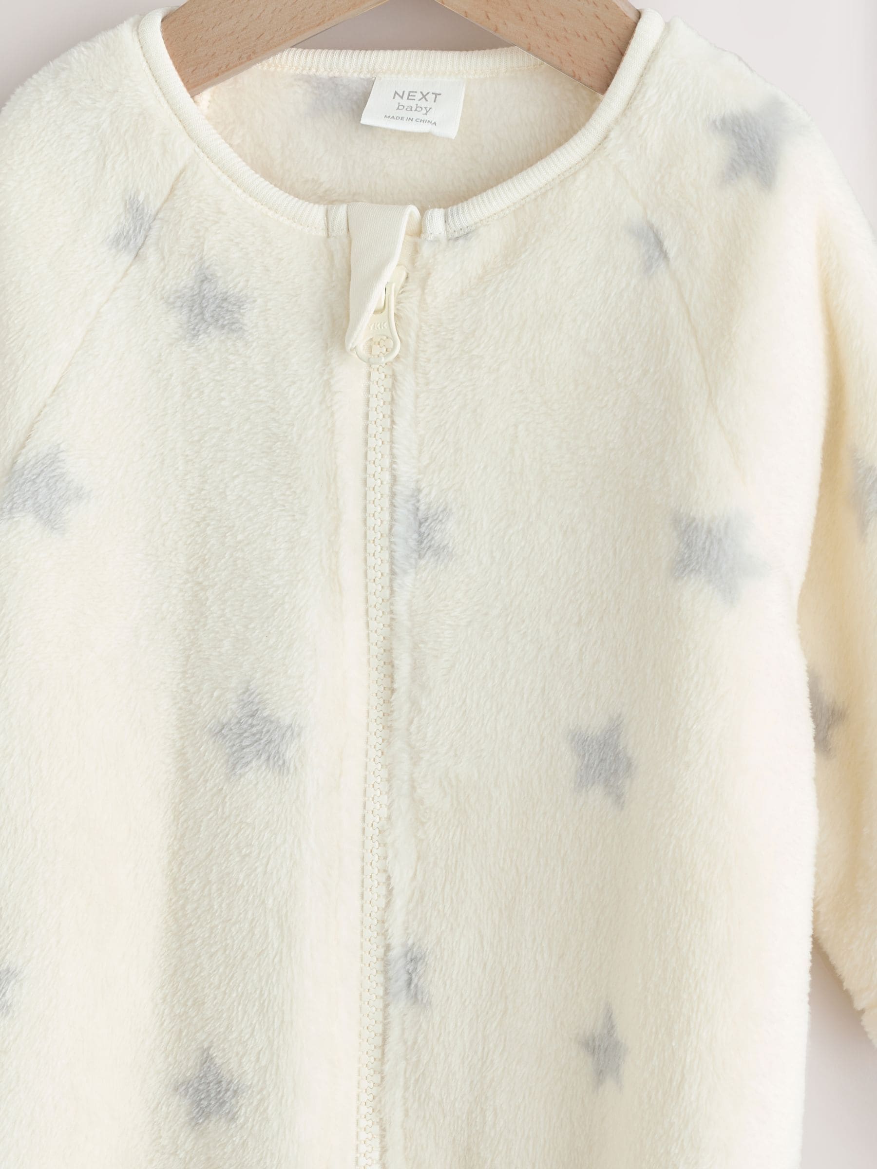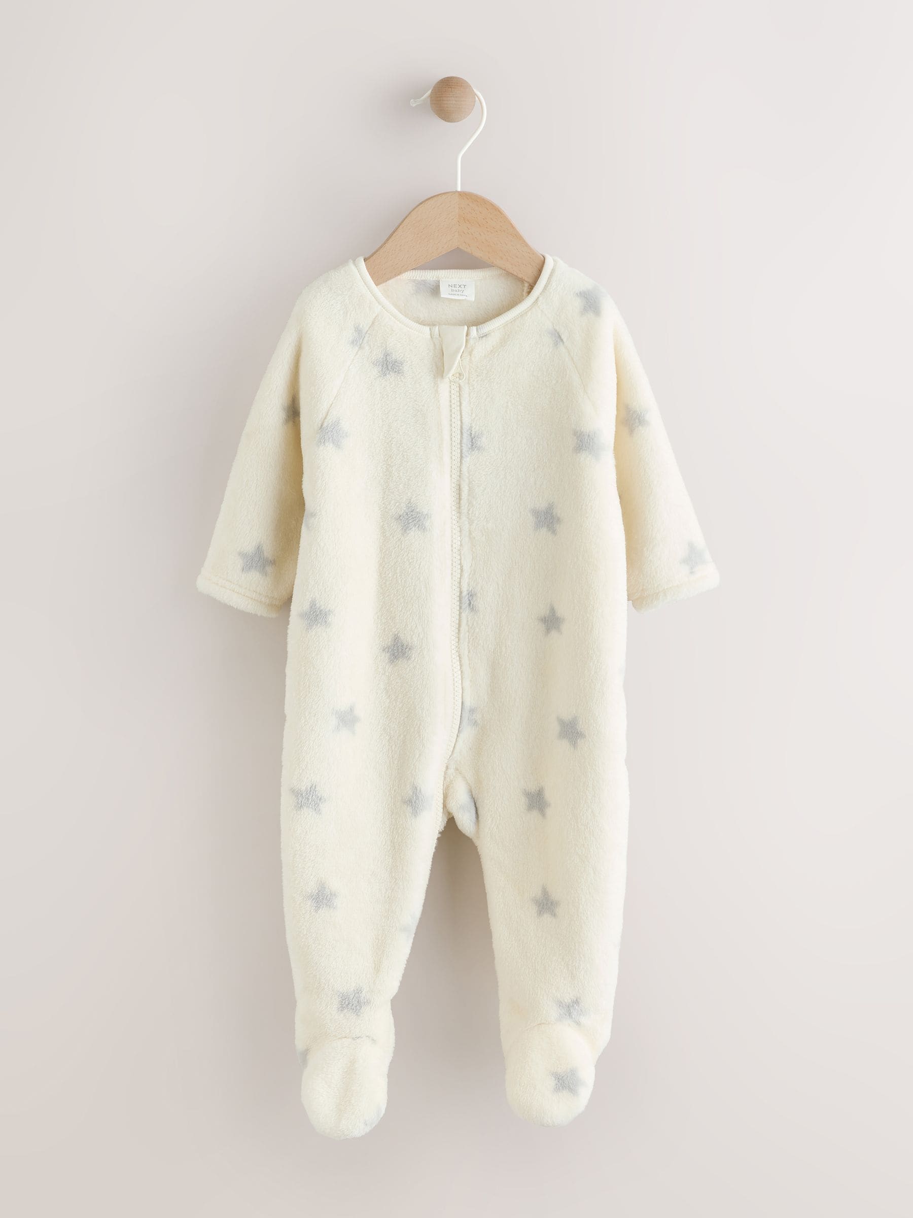 Designed for ultimate comfort, these soft fleece sleepsuits are a cosy choice for newborns. The zip front fastening ensures easy dressing, while the attached feet keep tiny toes warm, perfect for peaceful sleep. Soft fleece material Zip front fastening Attached feet Machine washable. 100% Recycled polyester. Country of Origin: China Warning: Keep away from fire and flames.