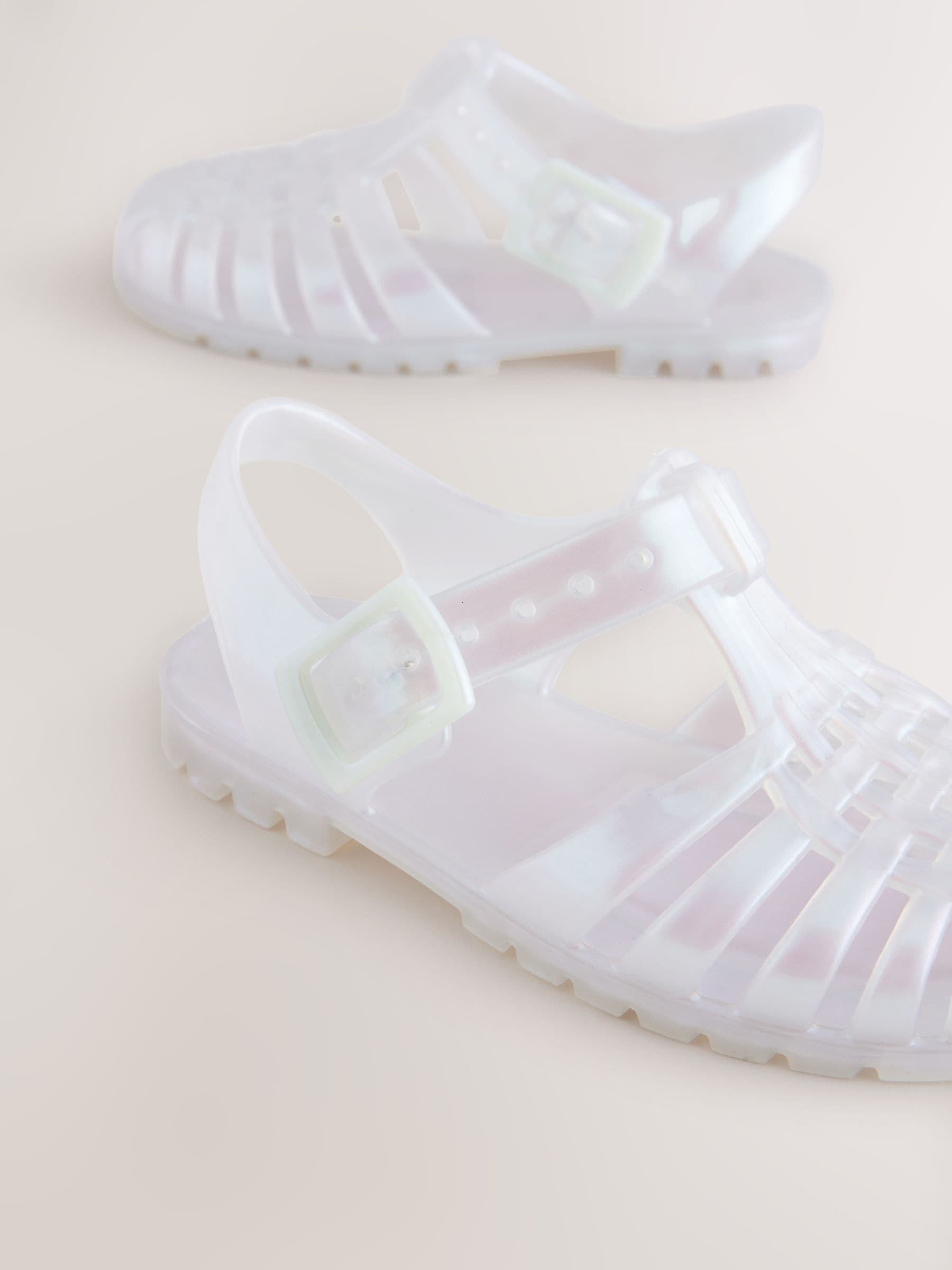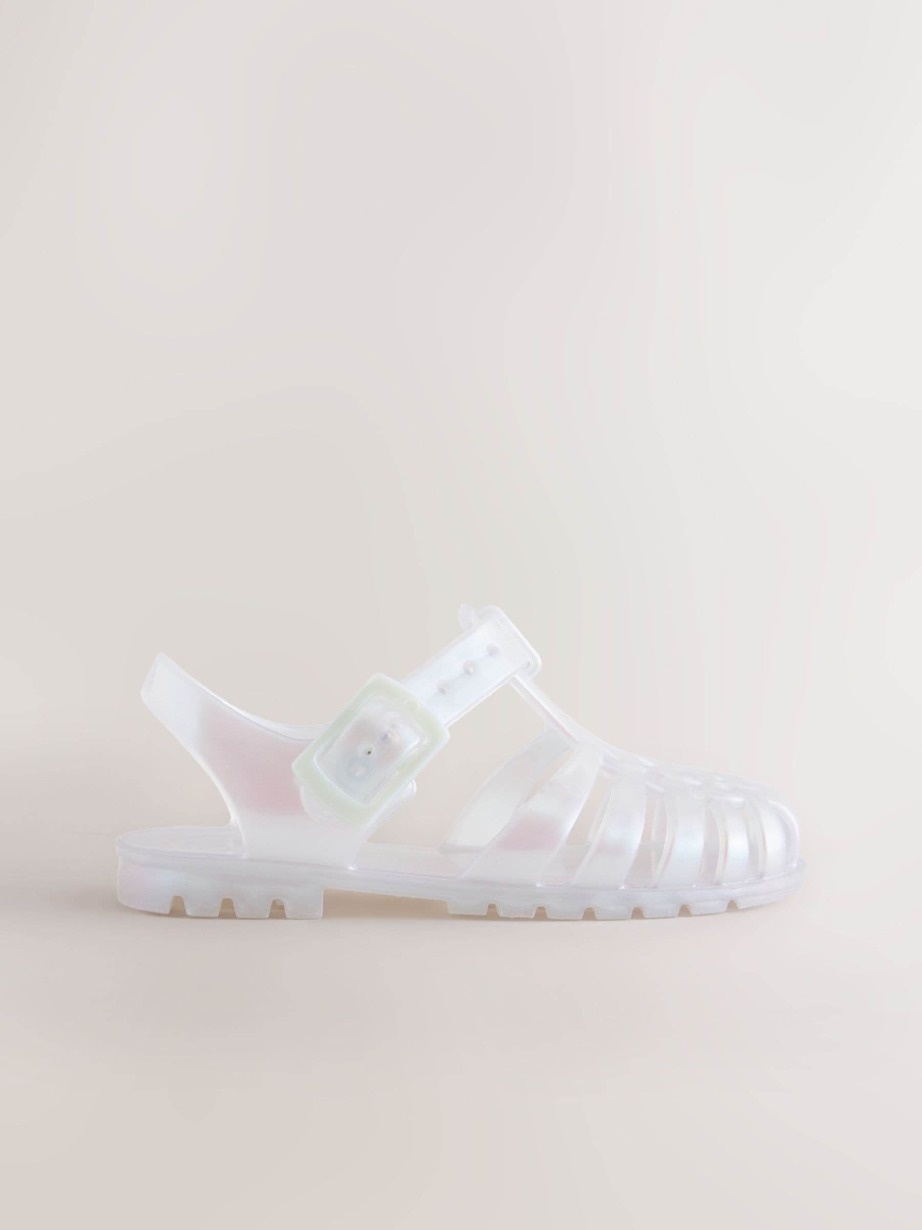 With a retro look, these fisherman sandals have a PVC jelly construction, with a strappy upper in an iridescent finish, a strappy design and an adjustable buckle fastening, finished with a durable outsole. PVC jelly upper Strappy design Adjustable buckle fastening Durable outsole Upper - Other Materials, Lining & Sock - Other Materials, Sole - Other Materials. Country of Origin: Great Britain