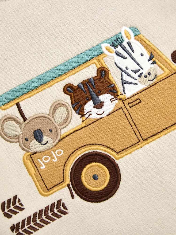 JoJo Maman Bébé Green Safari 2-Piece Appliqué Sweatshirt & Joggers Set
