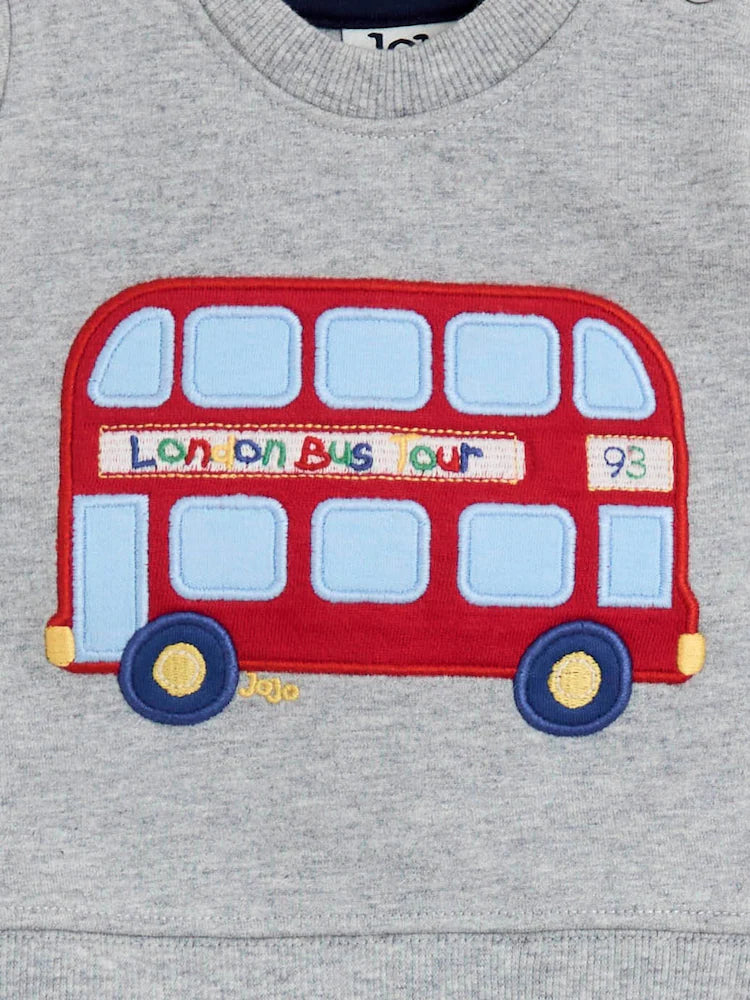 JoJo Maman Bébé Grey London Bus 2-Piece Appliqué Sweatshirt & Joggers Set