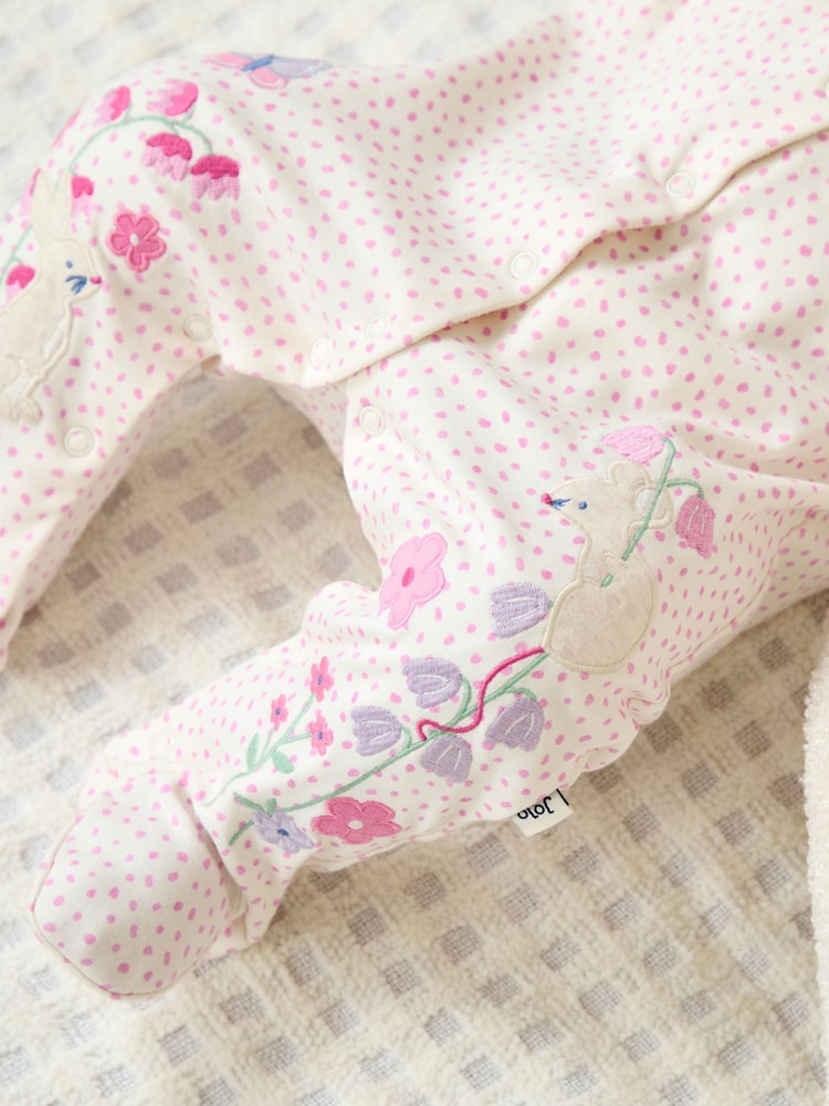 JoJo Maman Bébé Pink Pretty Appliqué Sleepsuit