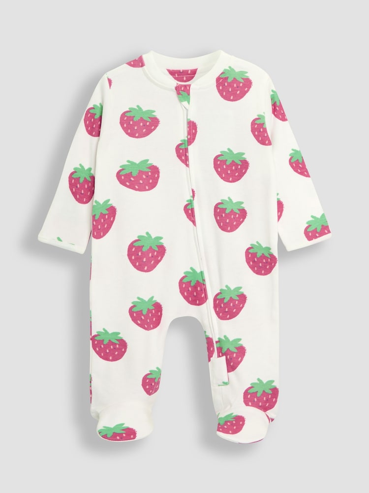 JoJo Maman Bébé White 2-Pack Strawberry Sleepsuit & Hat Set