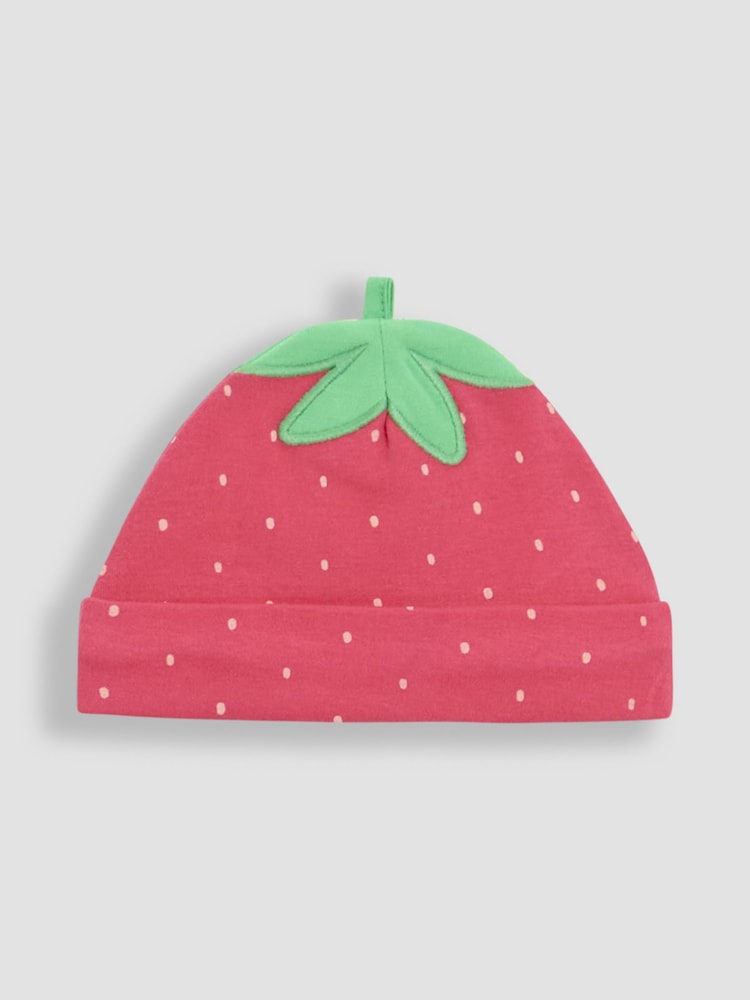 - 2-piece set includes a strawberry sleepsuit and a strawberry hat