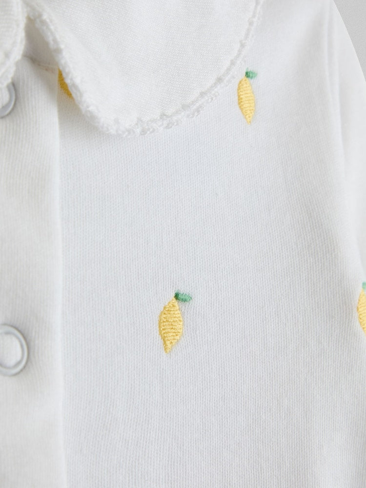 JoJo Maman Bébé White Lemon Cotton Footed Embroidered Sleepsuit