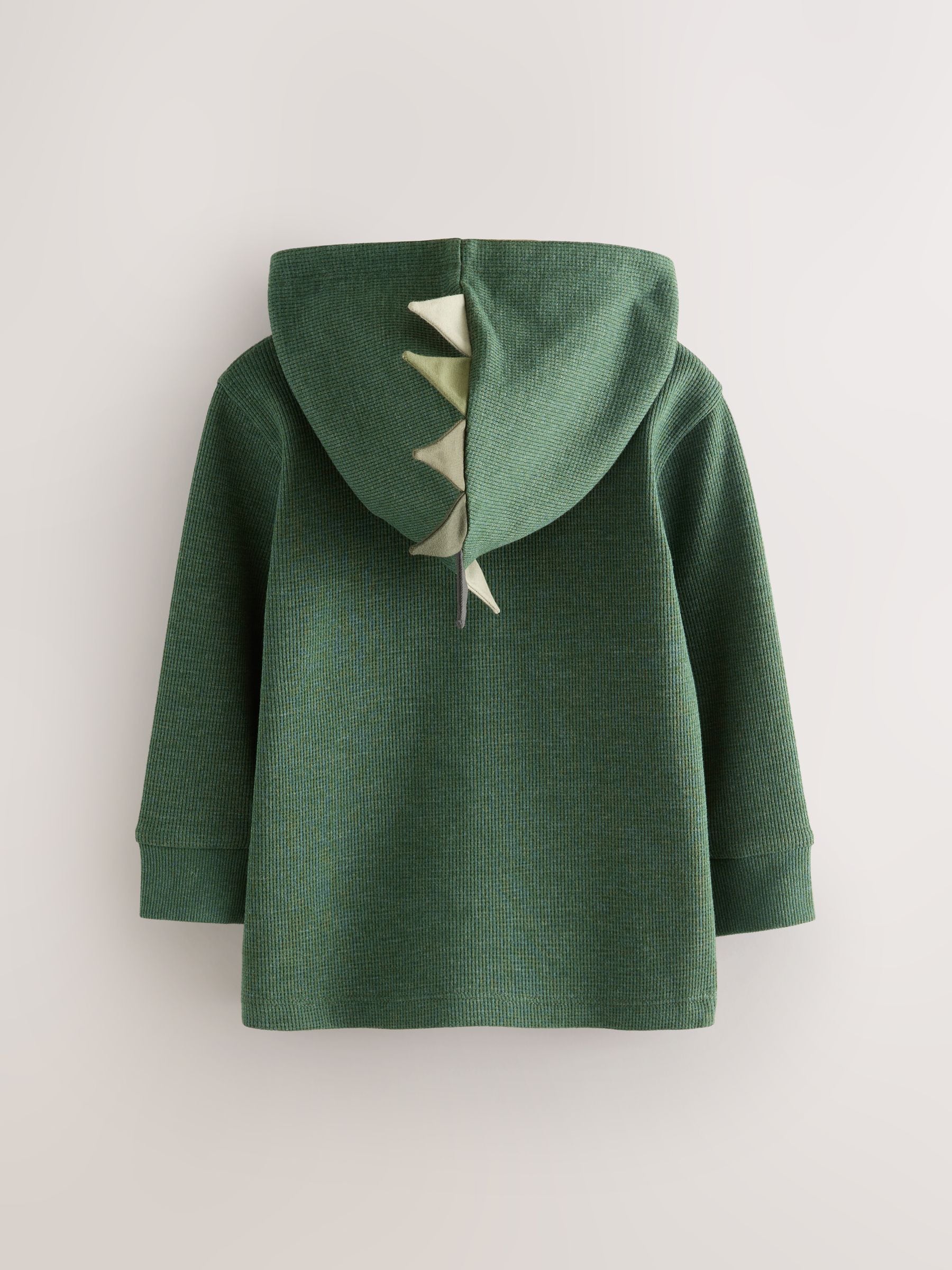 Khaki Green Textured Jersey Dino Spikes Hoodie (3mths-7yrs)